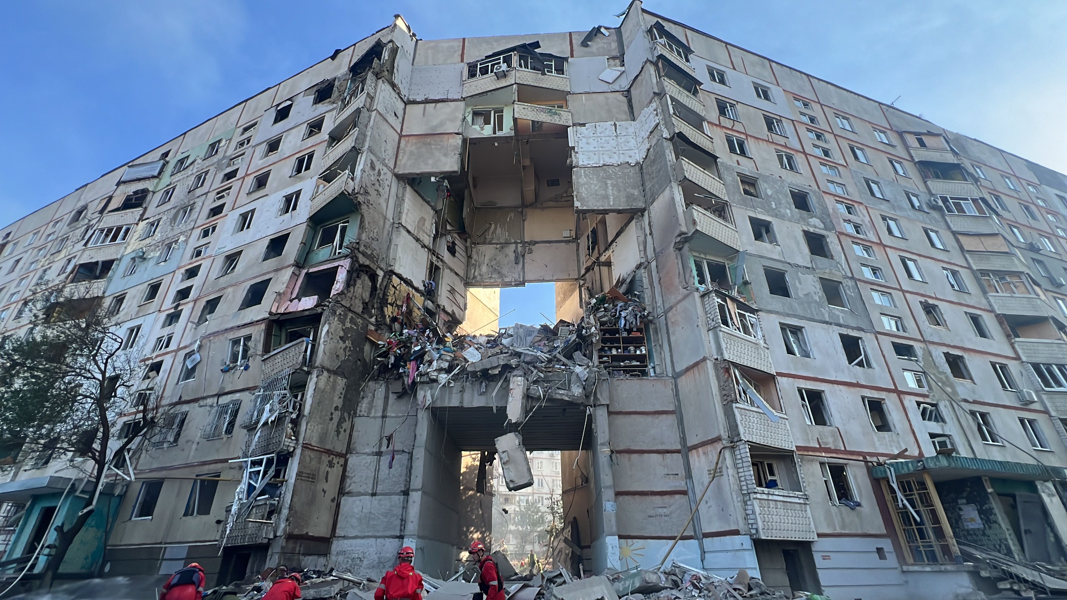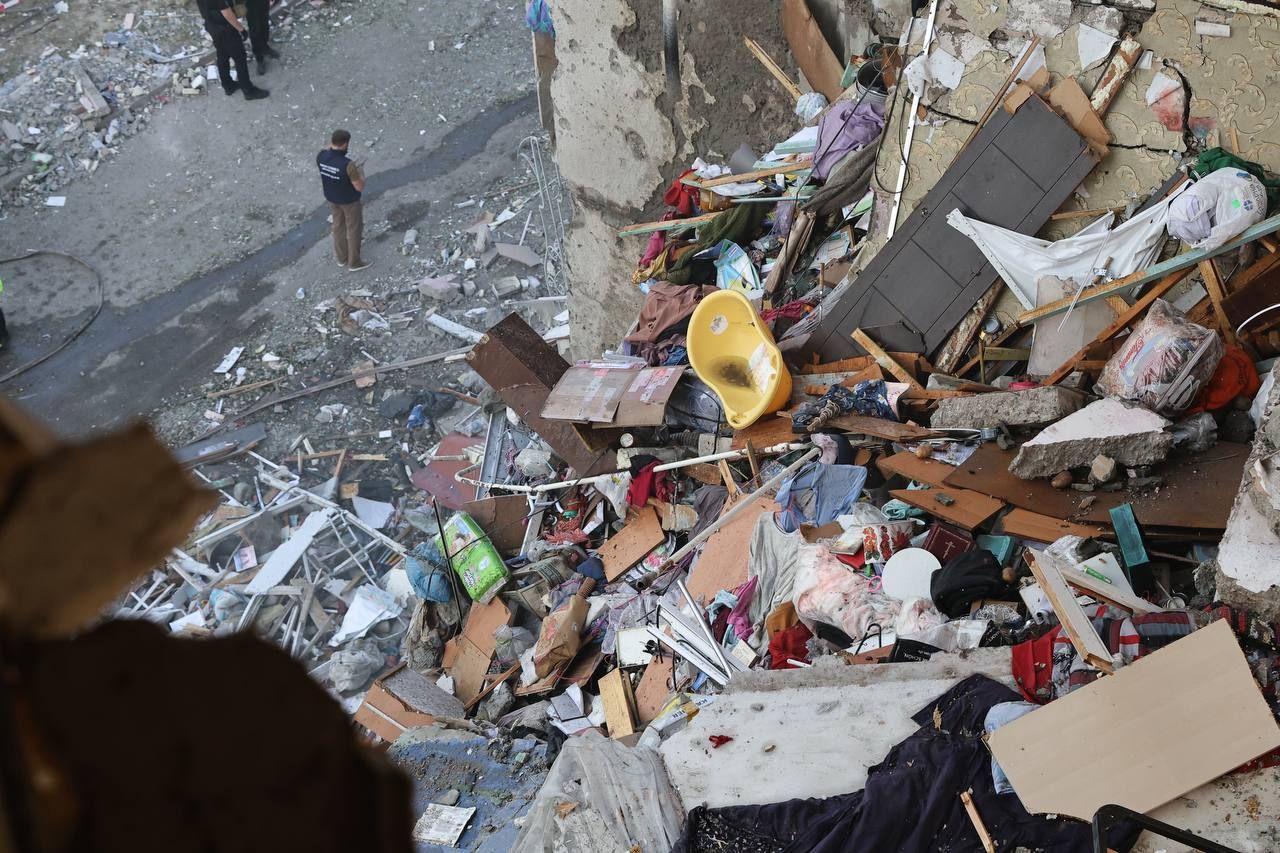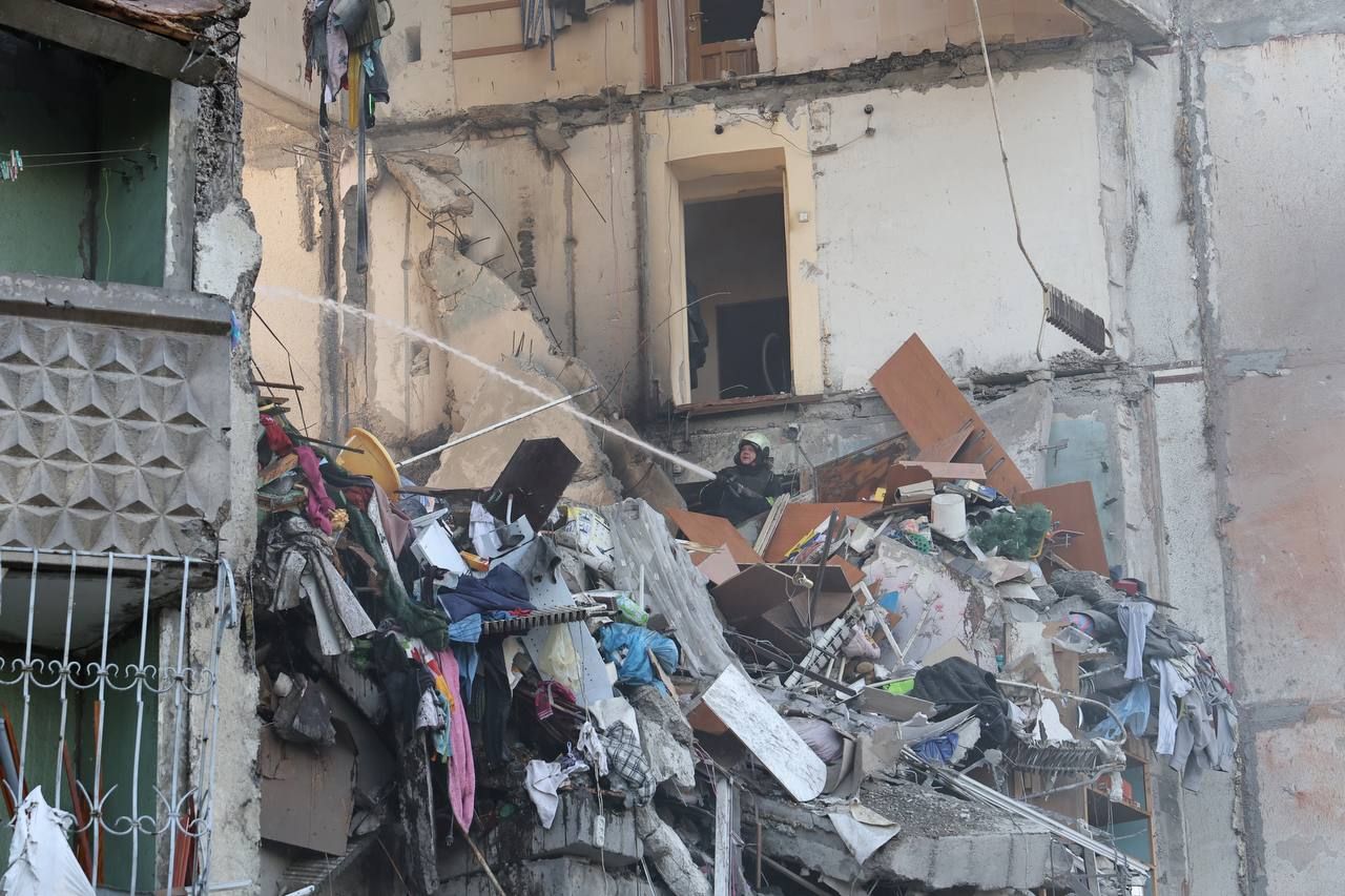 По его данным, в подъезде дома в Киевском районе, который больше всего поврежден, жили 82 человека.