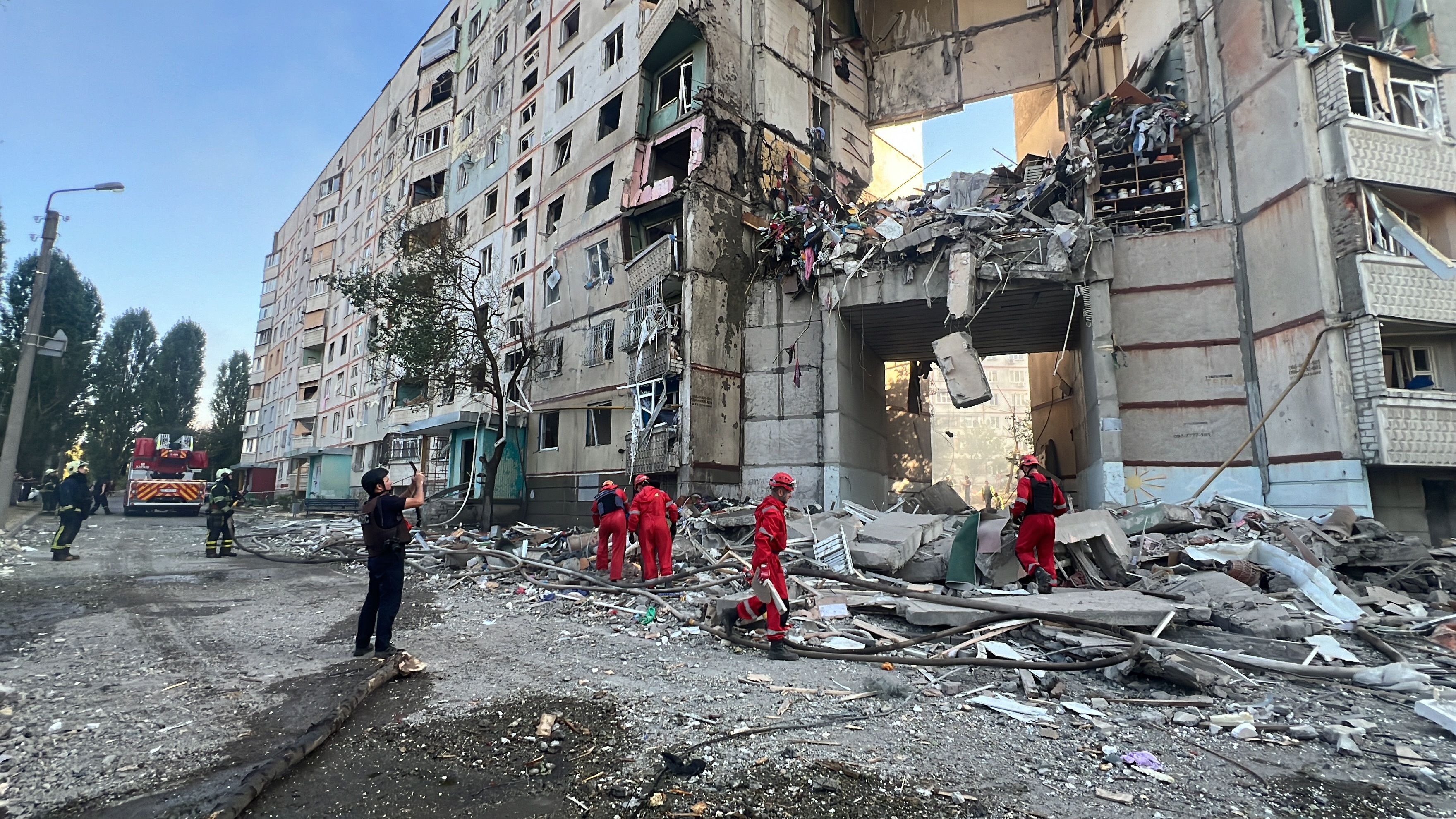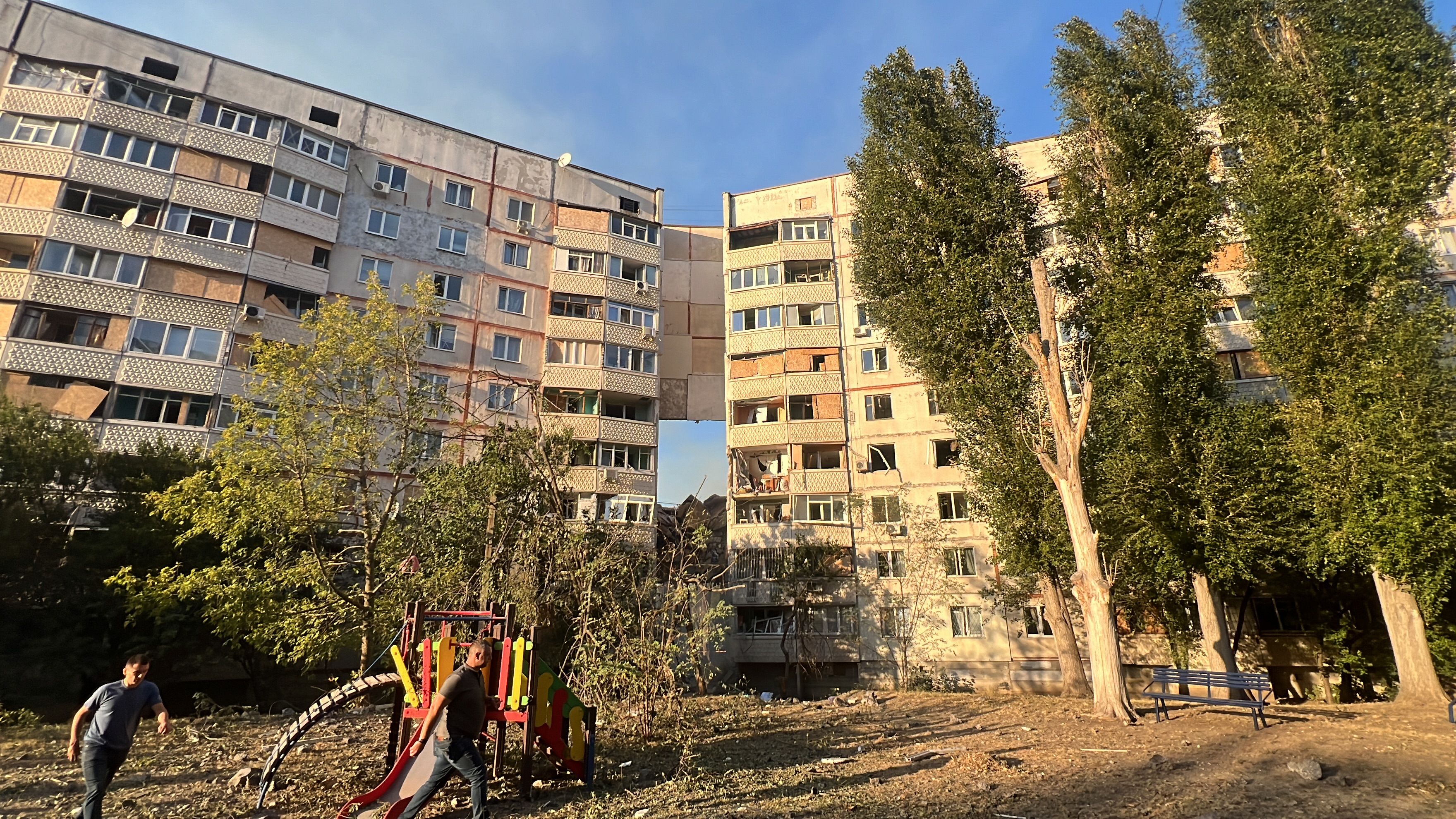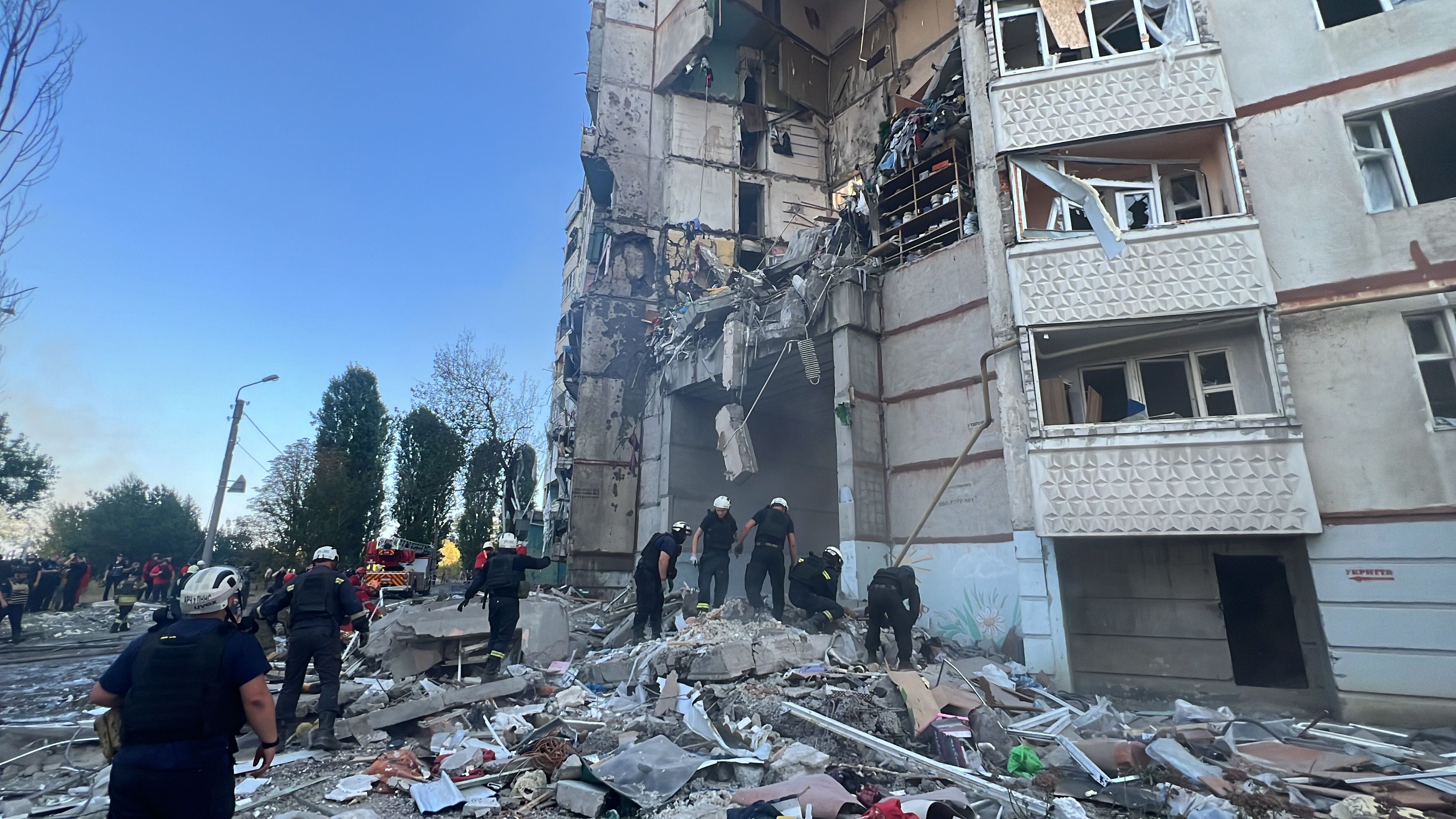 Олег Синегубов рассказал, что оккупанты попали в 9-этажный дом, по гражданскому предприятию, а также на открытой территории. Игорь Терехов уточнил, что в Киевском районе этажи многоэтажки сложились с восьмого по третий.