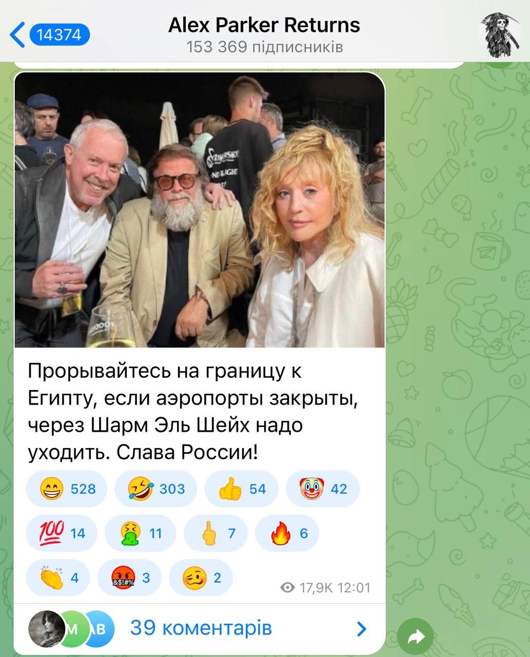 Украинский волонтер Сергей Притула также отметил, что в этот день также день рождения российского президента Путина, поэтому, очевидно, палестинцы "сделали ему такой подарок". Притула иронически сказал, что глава страны-агрессорки сейчас "сидит в бункере и наслаждается кадрами из Израиля".