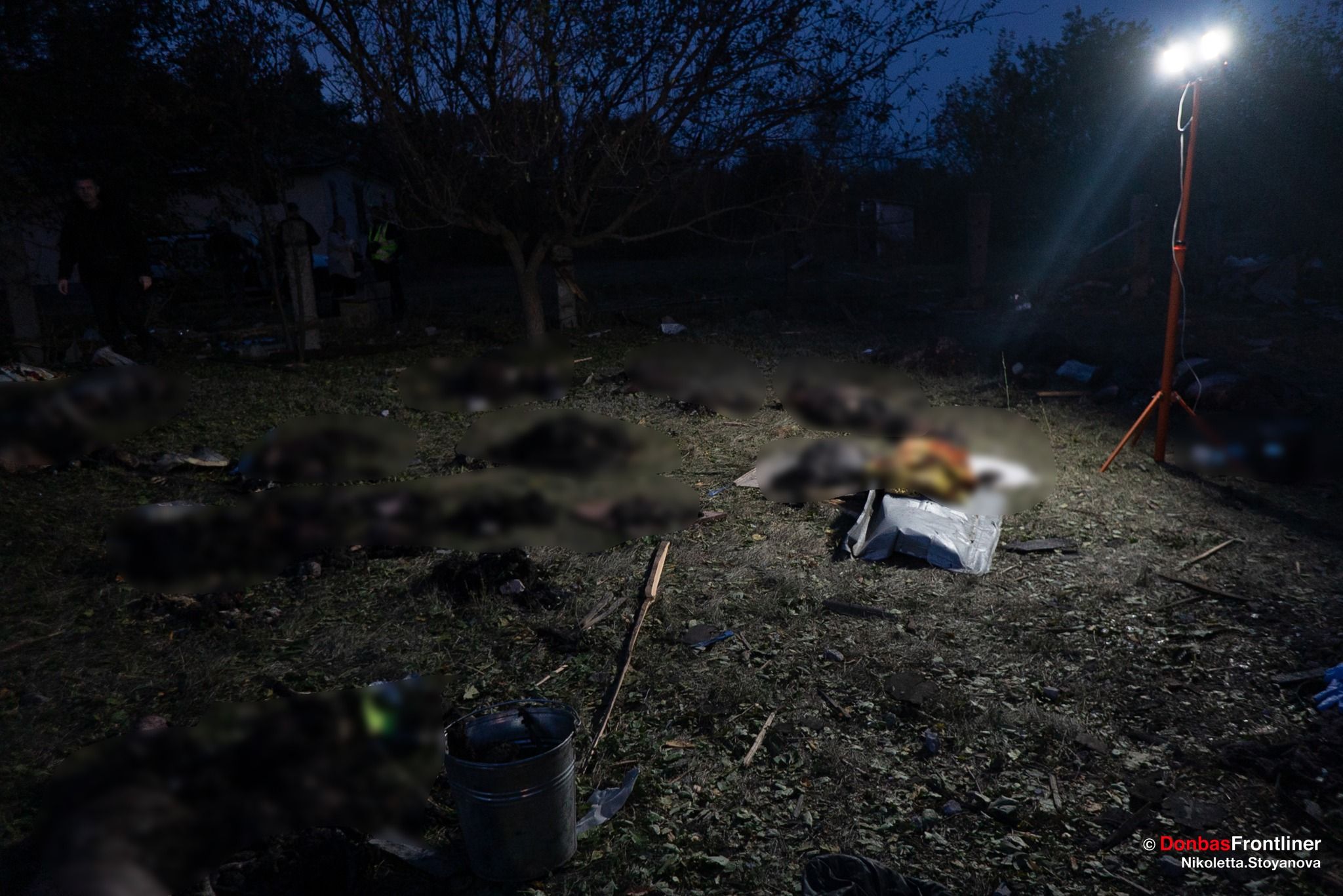 Фотограф Donbas Frontliner поделилась ужасающими кадрами после удара по селу Гроза. Родственники и знакомые убитых плачут и ходят от тела к телу.