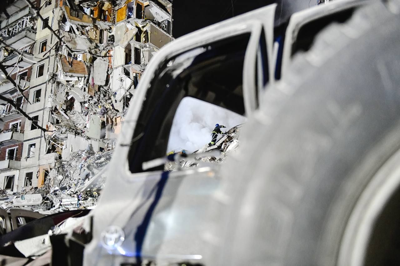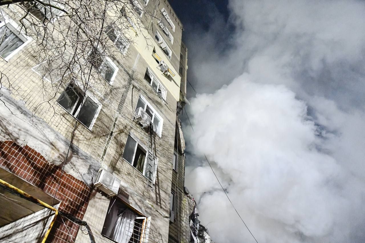 В ОП сообщили, что российская ракета попала в дом, в котором 16 подъездов и проживало около 1 700 жителей.