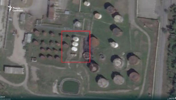 Кадр из космоса за 8 мая показывает следы пожара и по меньшей мере три уничтоженные огнем емкости для хранения топлива.