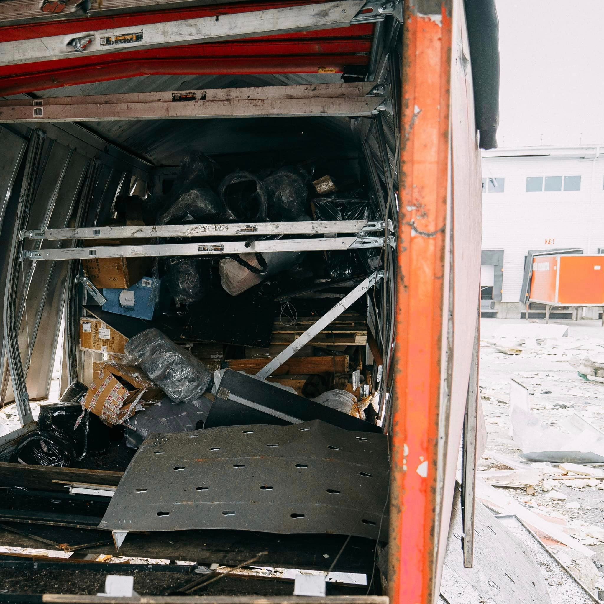 Последствия обстрела терминала "Новой почты" / Фото из фейсбука "Новой почты"