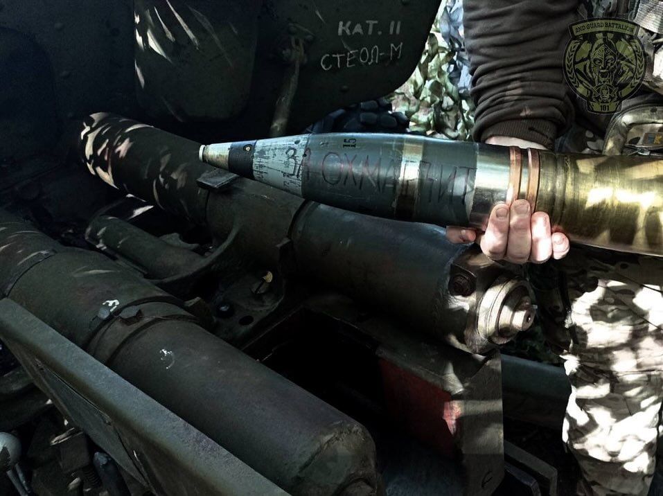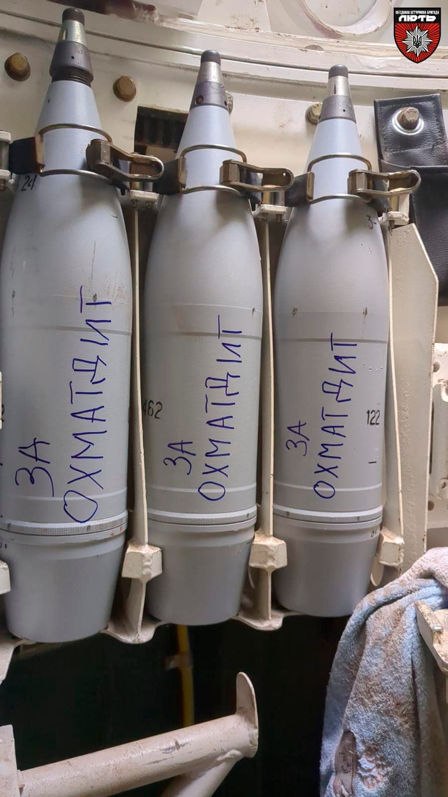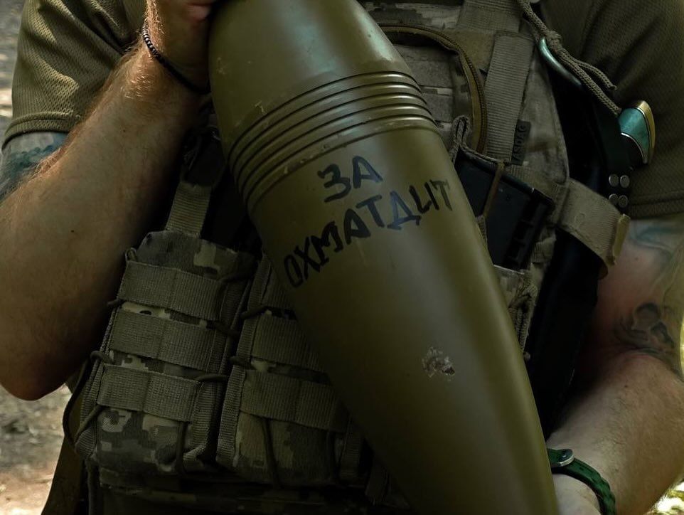 К "флешмобу" присоединились и пограничники. Они пишут на снарядах: "За Охматдет". А потом будут бить ими по врагу.