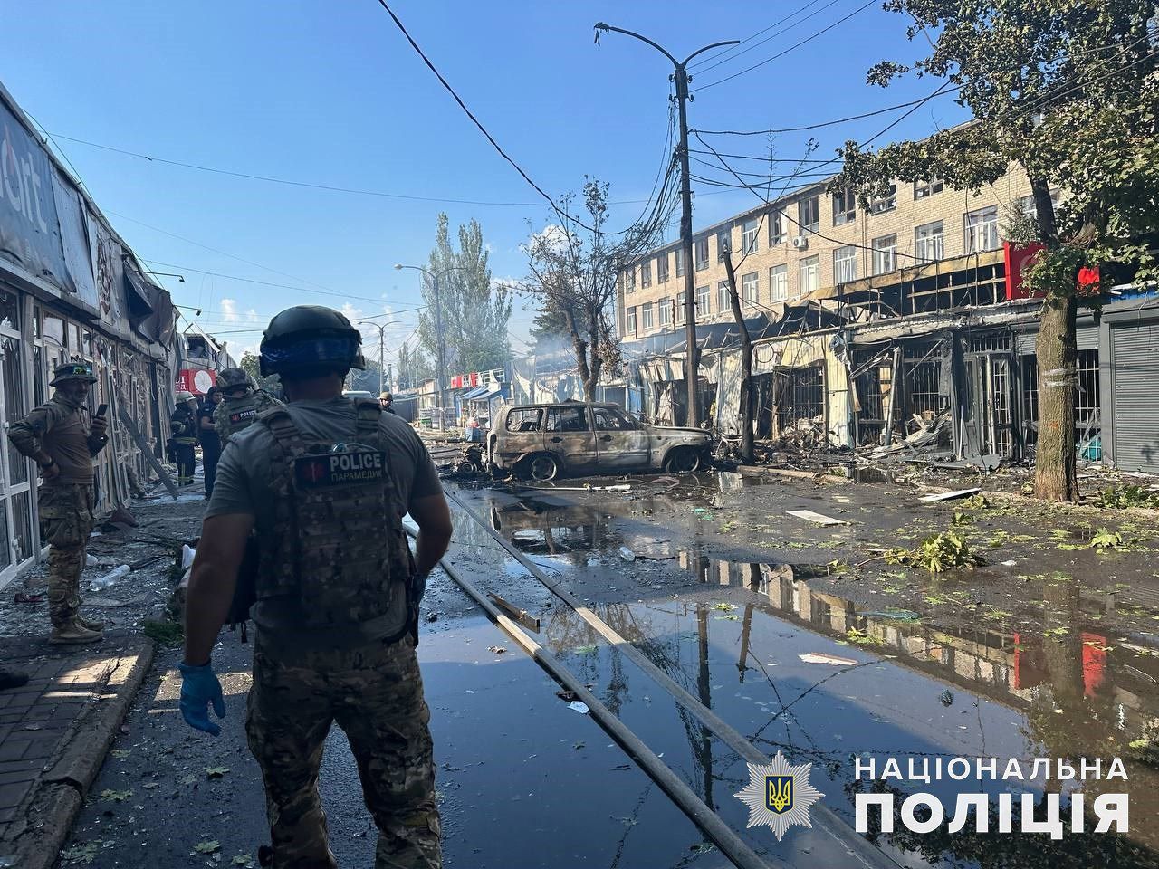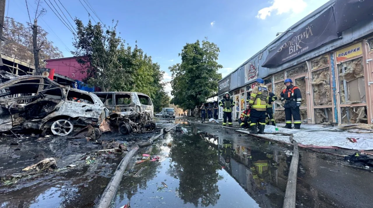 Напомним, что оккупанты ударили по рынку в 14:04. В месте попадания занялся пожар, его удалось локализовать.