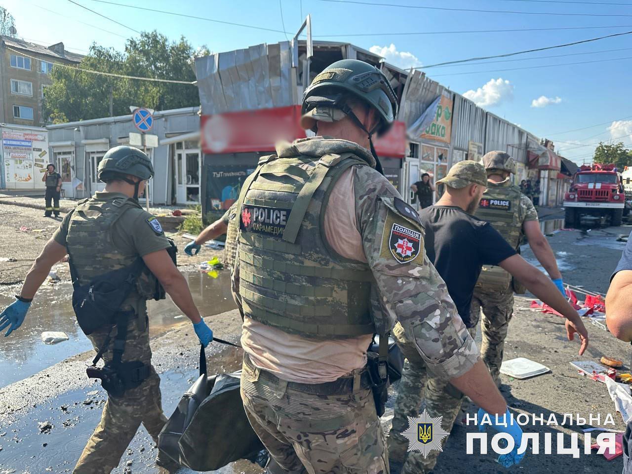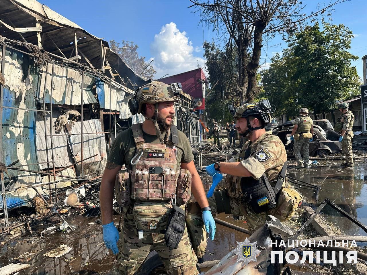 Полицейские-парамедики работают на месте удара в Константиновке: