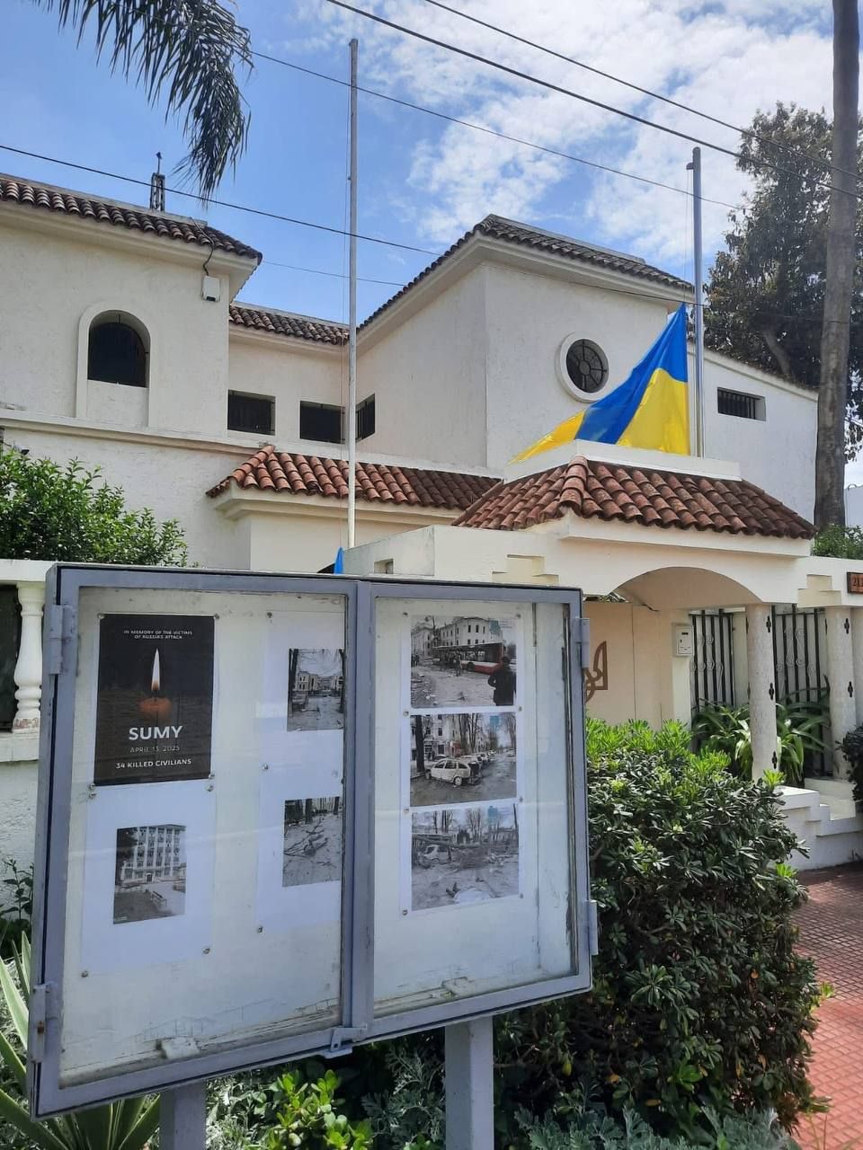 В понедельник, 14 апреля, зарубежные дипломатические учреждения по всему миру приспустили государственные флаги, почтив память погибших в Сумах. Книги траура были открыты в посольствах и консульствах Украины.