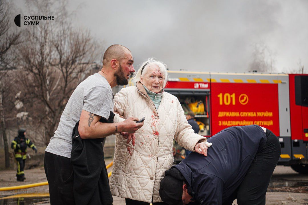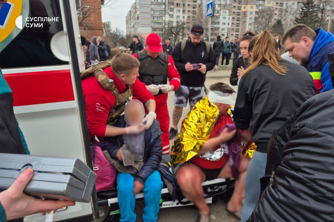 Несколько часов назад во время очередной ужасной российской бомбардировки центра Сум пострадали десятки мирных жителей, среди которых много детей,