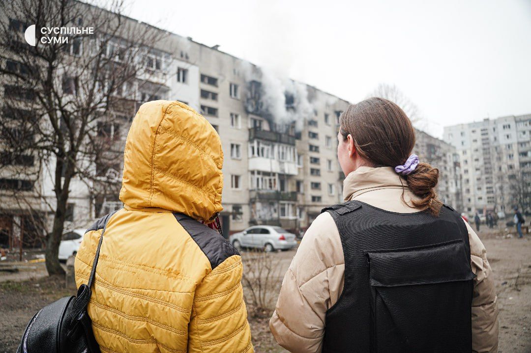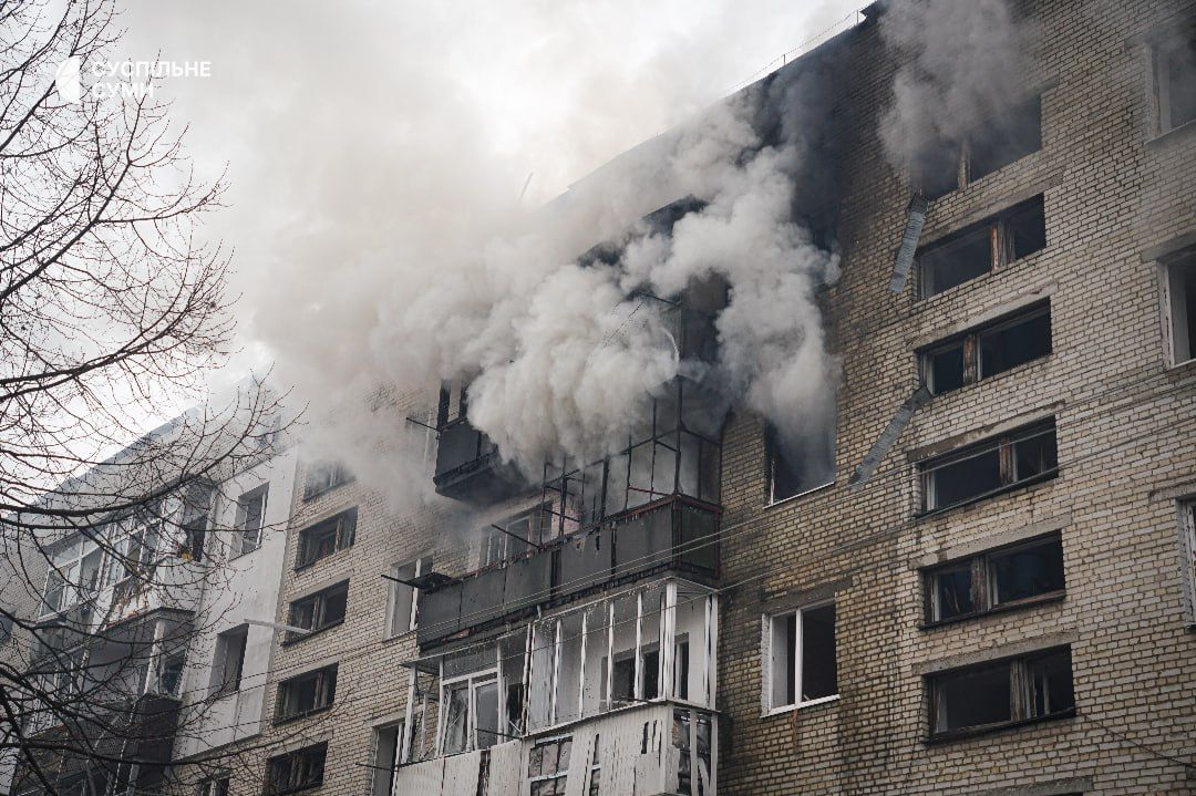 Журналисты Суспильного рассказали, что днем 24 марта в Сумах был слышен звук взрыва. В результате удара в многоэтажке загорелся пожар, также повреждены окна в близлежащих домах.