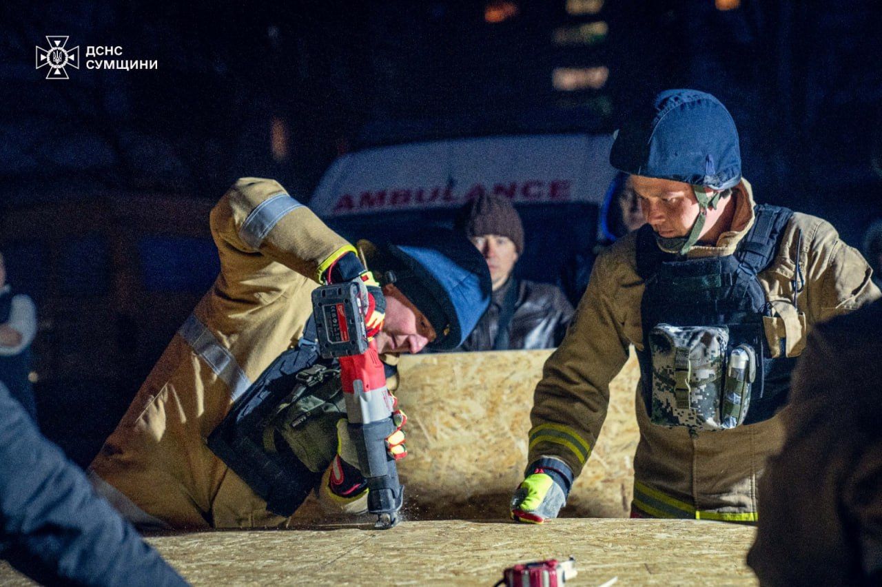 Спасатели продолжают работать на месте атаки в Сумах / Фото ГСЧС
