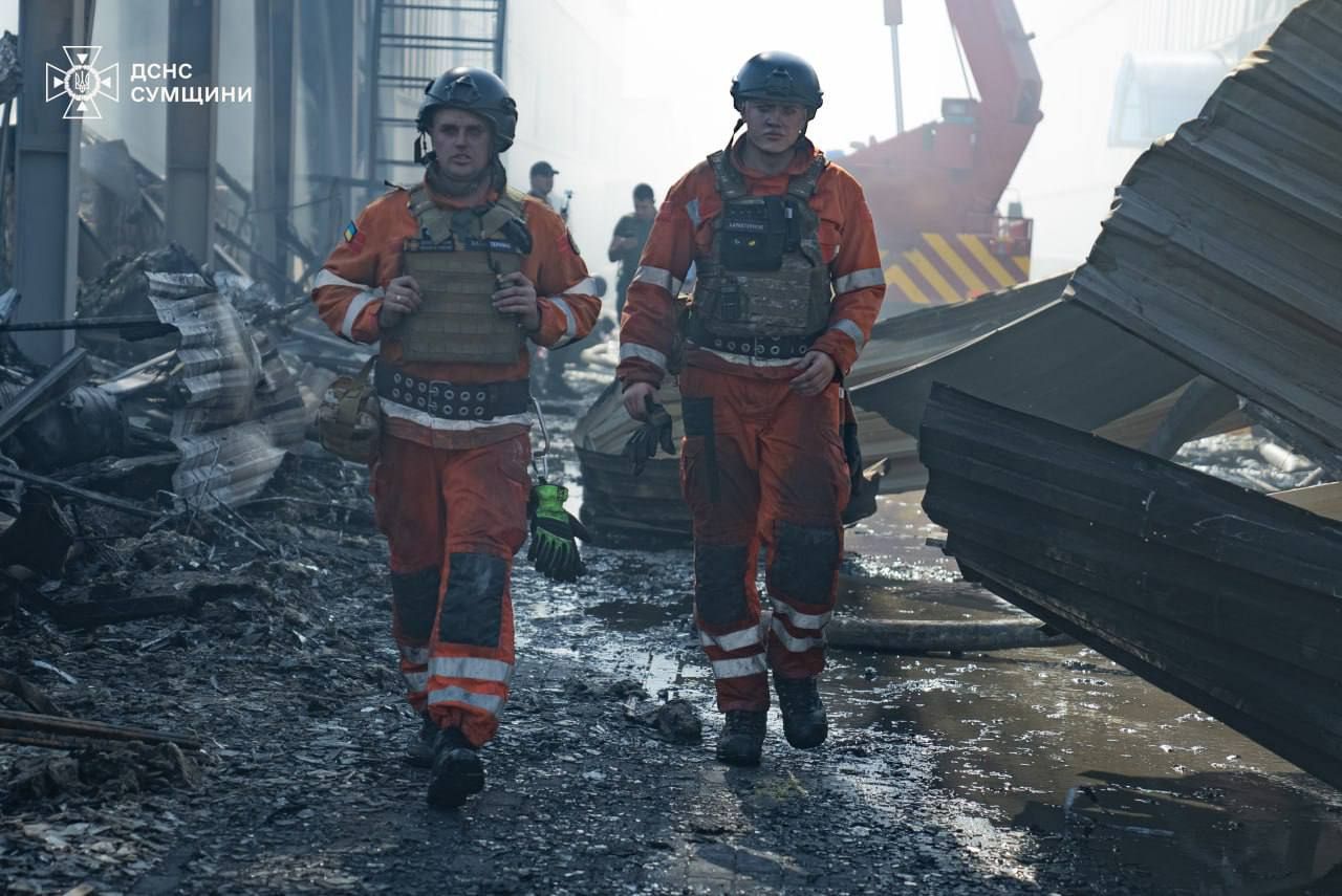 Последствия удара по предприятию в Сумах / Фото ГСЧС