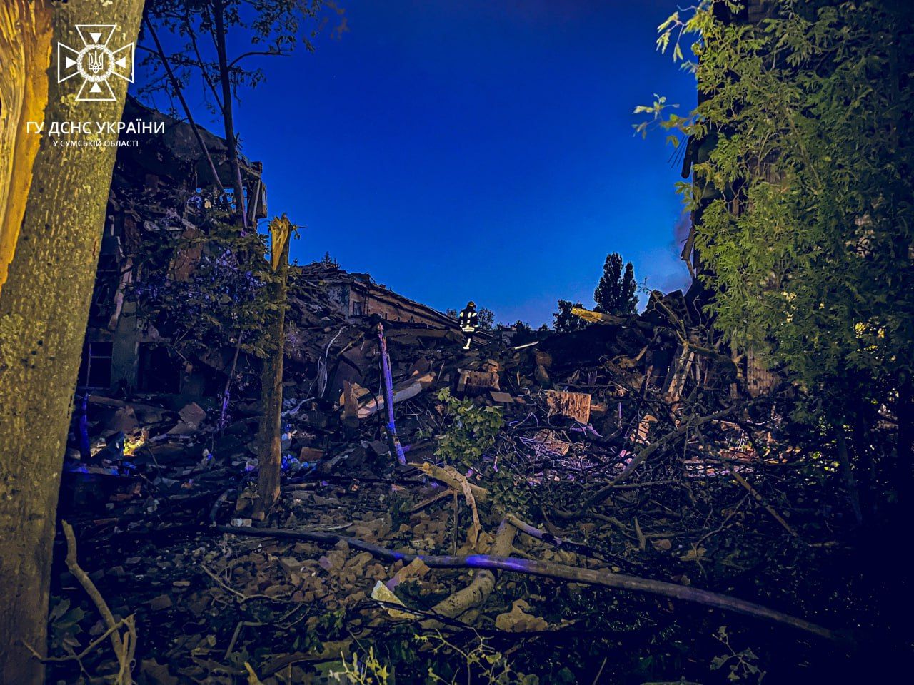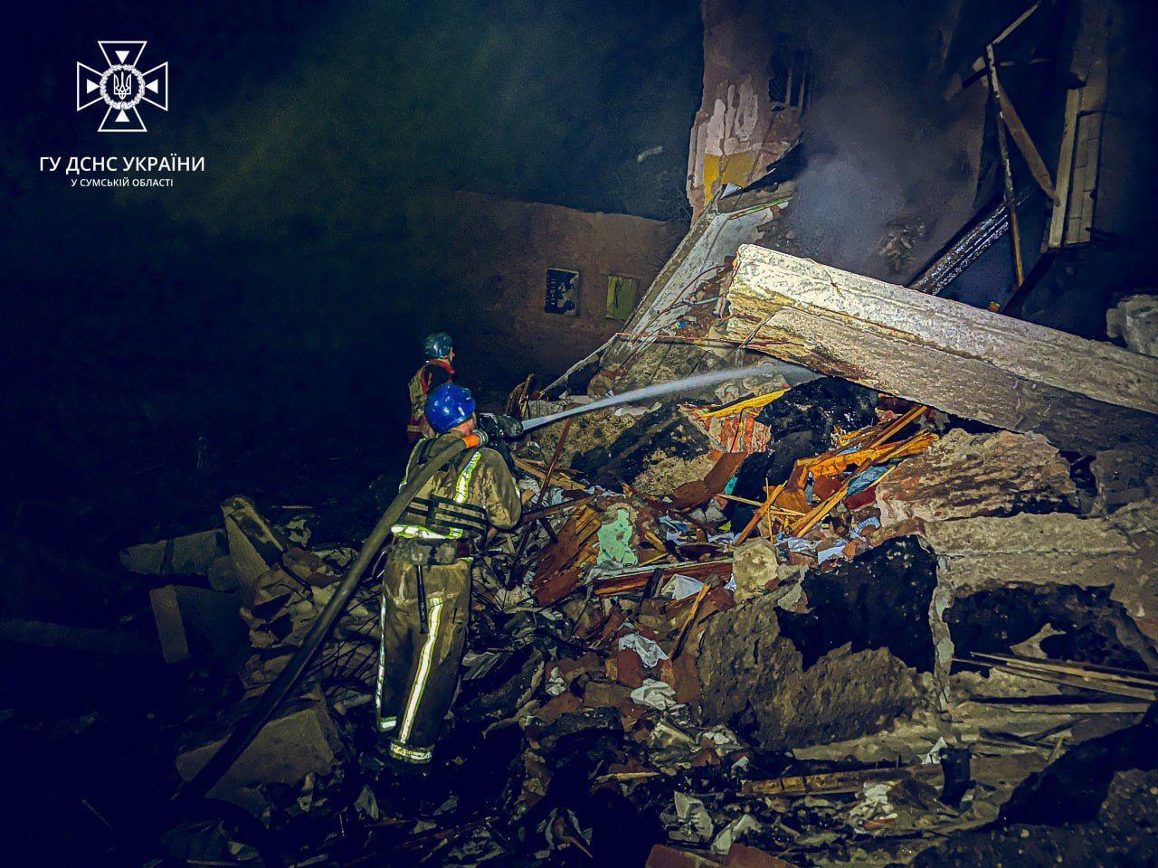 Как спасатели всю ночь ликвидировали последствия удара по Сумам