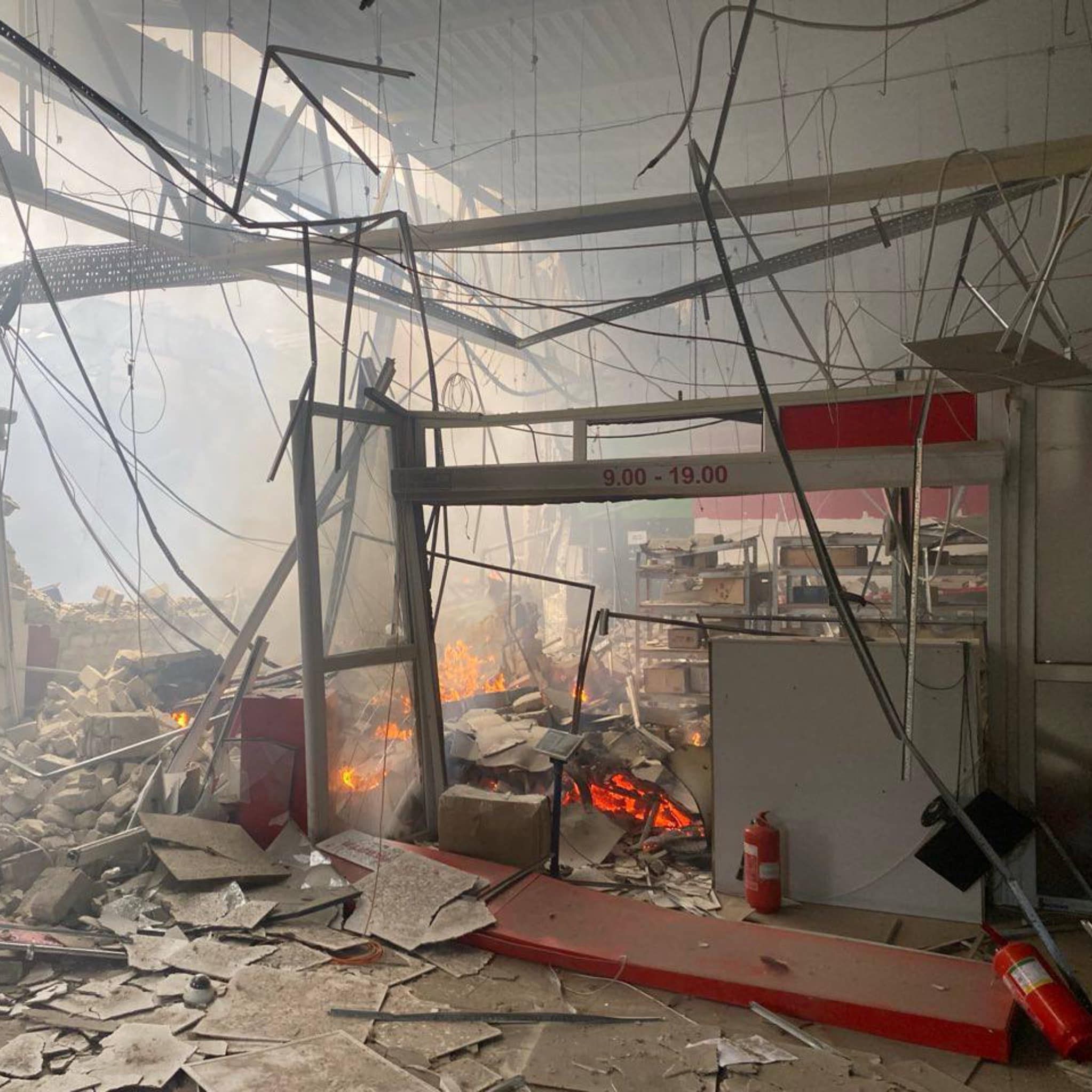 Константиновка. Попадание в торговый центр, где размещалось грузовое отделение "Новой почты". Все наши сотрудники живы, один коллега получил контузию – ему оказывается вся необходимая помощь,