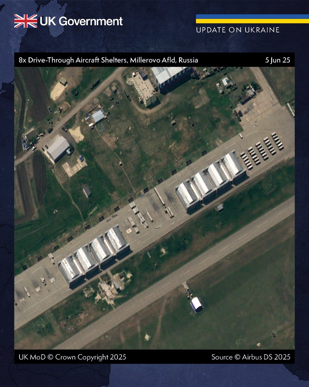 Британские разведчики напомнили, что авиабаза "Миллерово" расположена примерно в 17 километрах к востоку от российско-украинской границы и в последний раз была атакована 22 июля 2025 года.
