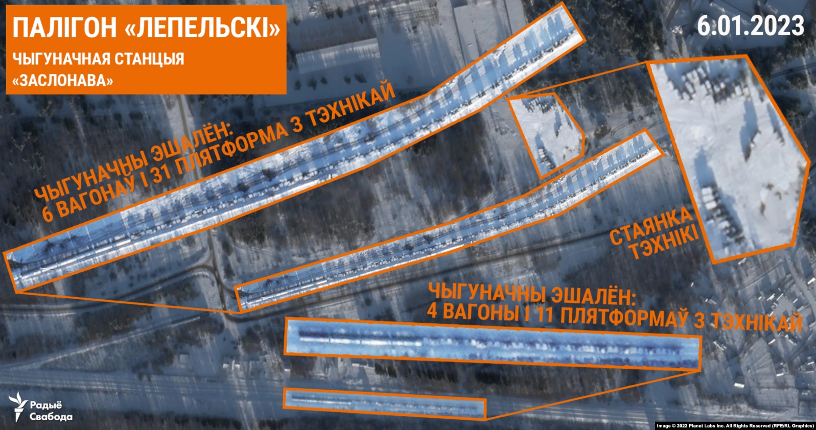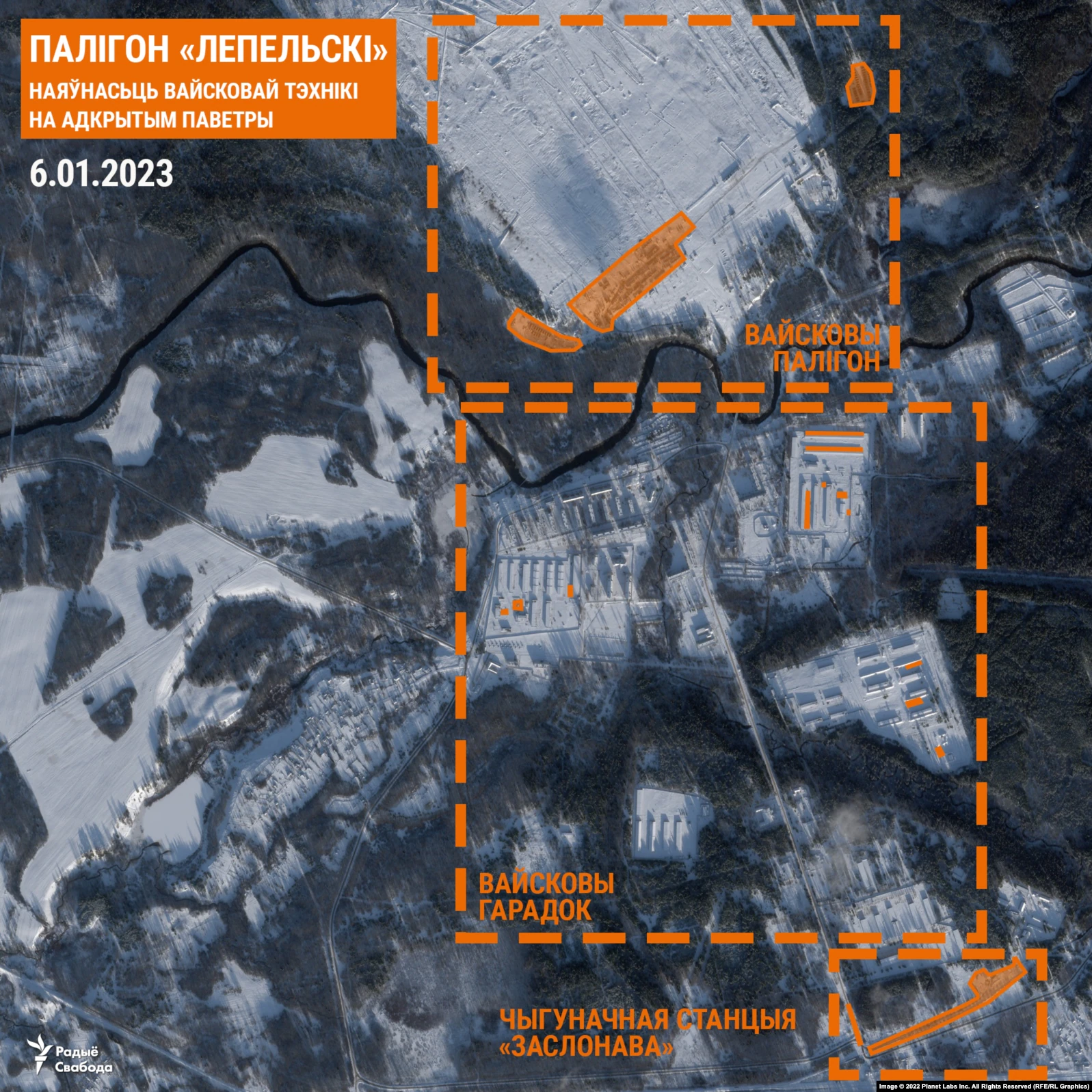По состоянию на 12 января 2023 года российские войска продолжают прибывать на полигон "Лепельский". Параллельно идет постоянная проверка 19-й гвардейской отдельной механизированной бригады, которая дислоцируется поблизости в селе Заслонава.