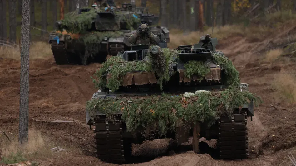 Два танка Leopard 2A6 на учениях НАТО в Литве в 2022 году / Фото SeanGallup / Getty Images