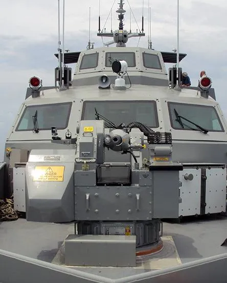 - Катер вооружен двумя автоматическими 25 миллиметровыми артустановками, в которых есть возможность дистанционного управления.