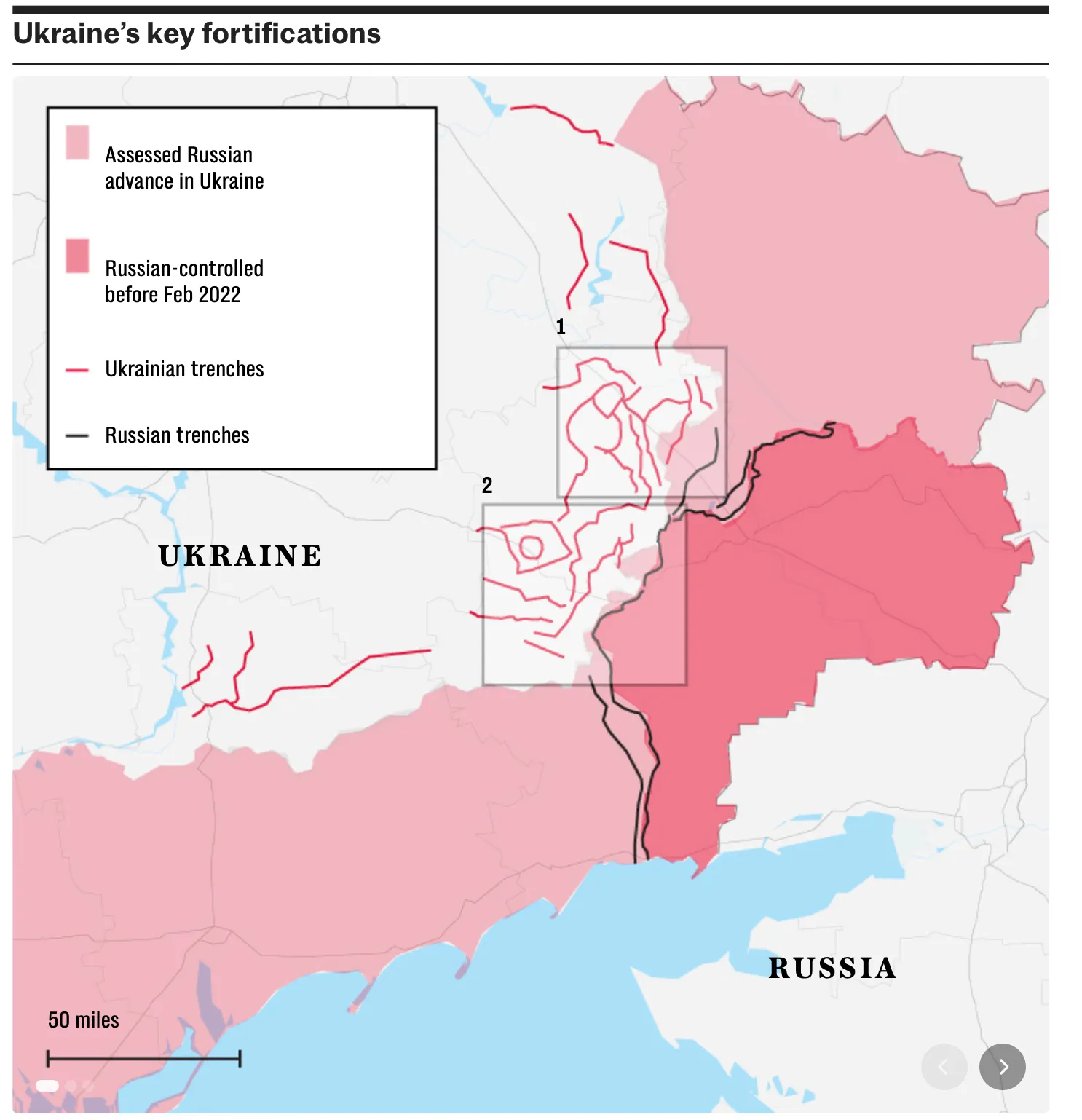 The Telegraph напоминают, что в конце 2023 года Владимир Зеленский отметил, что Украина "значительно усиливает свои фортификационные сооружения". Следовательно, оборонительные приготовления усилили вокруг донецких городов Лиман и Авдеевка, а также Купянска в соседней Харьковской области.