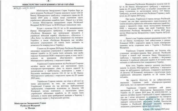 25 июня МИД Украины получил ноту Министерства иностранных дел России. В ней страна-агрессор заявила, что готова отдать 24 захваченных на Азове украинских моряка, если в Украине продолжат им уголовное преследование по российским законам.