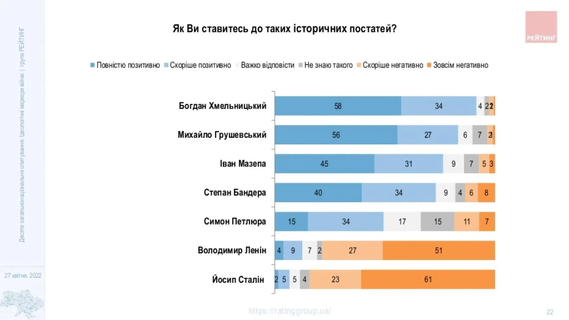 Отношение украинцев к разным историческим фигурам в апреле 2022 года / Инфографика "Рейтинг"