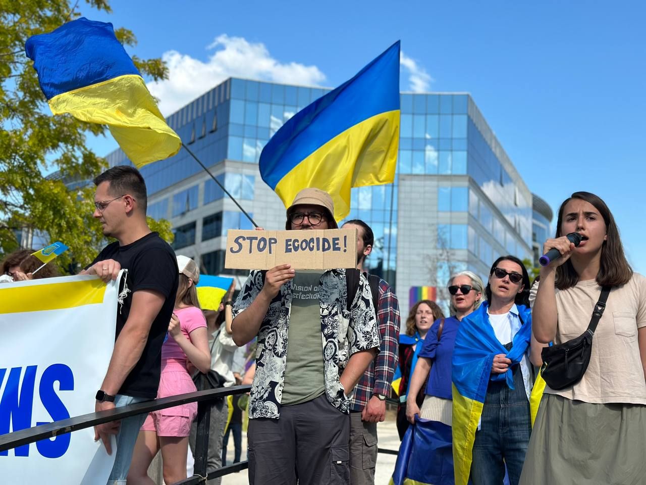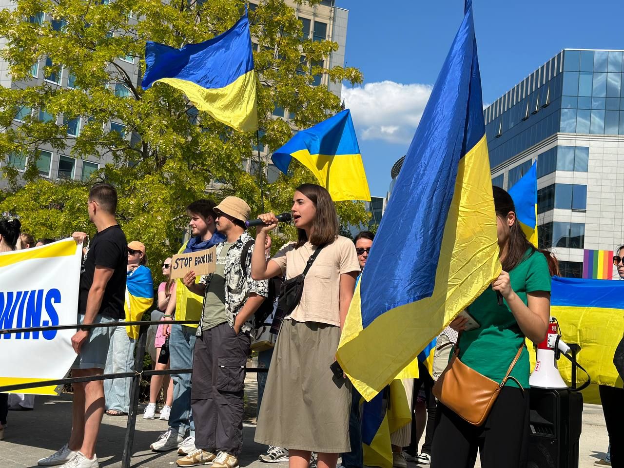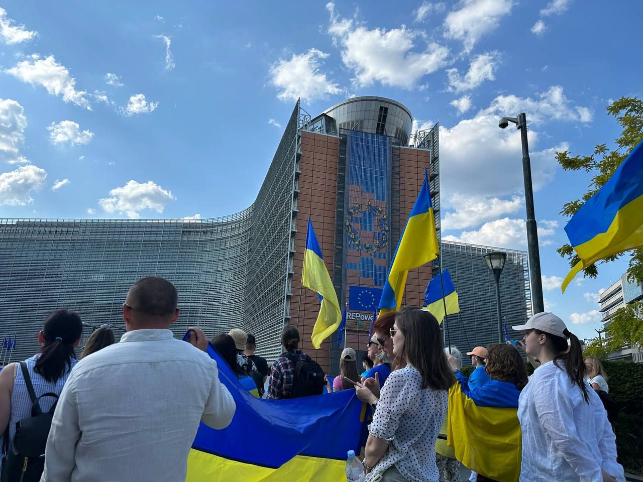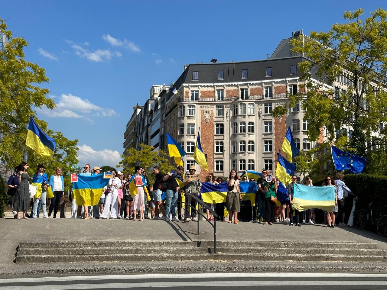 Мы вышли на демонстрацию, потому что сегодня решисты взорвали дамбу на Новой Каховке и мы требовали от Европейского Совета и Европейской Унии наконец-то признать Россию государством-спонсором терроризма,