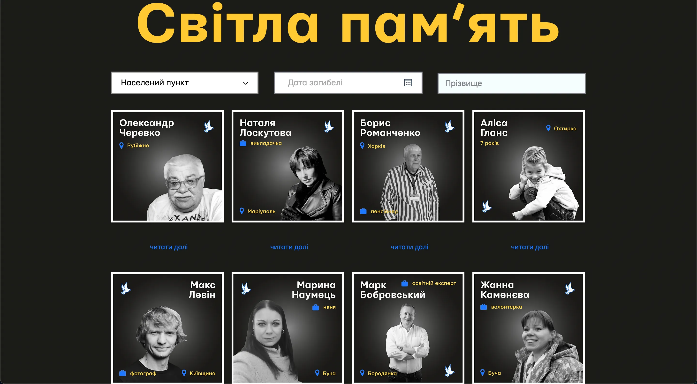 Этот проект очень важен и нужен сейчас. Каждый должен знать и помнить всех жертв российской агрессии.