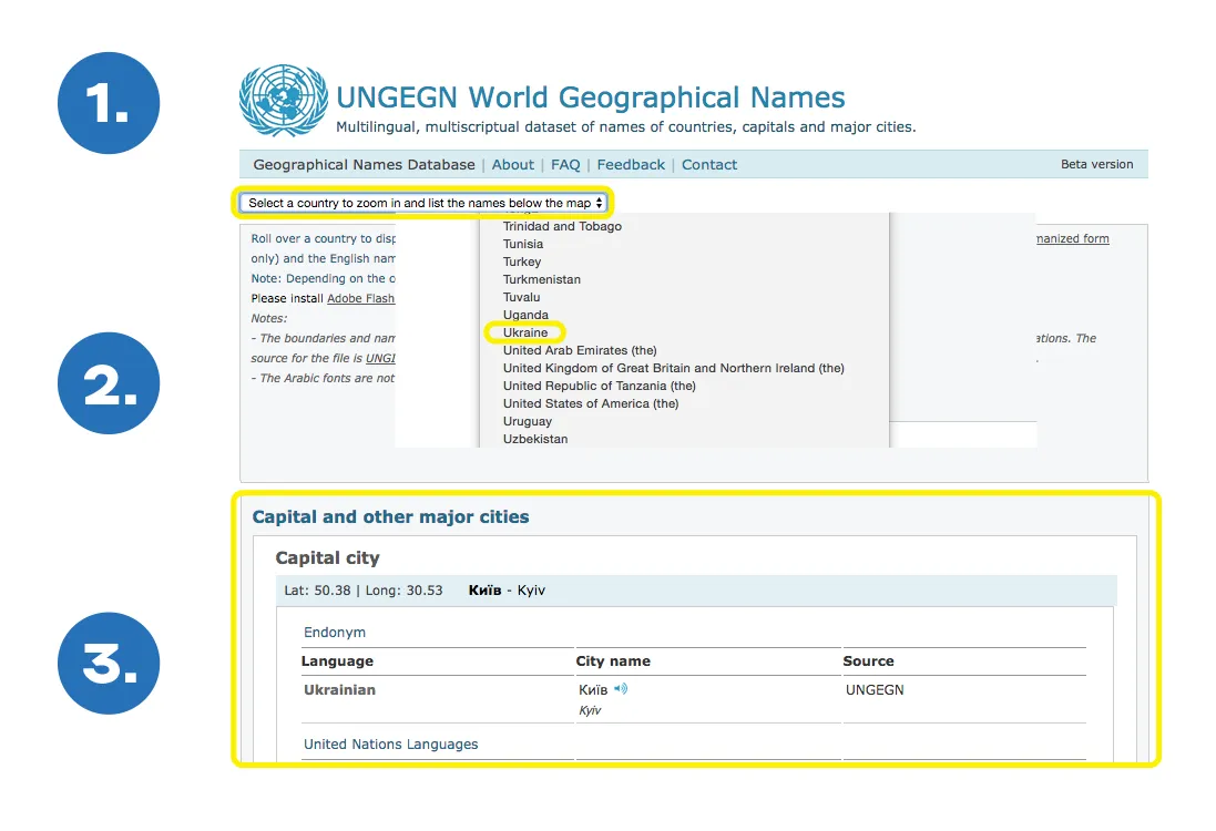 Представители инициативы #KyivnotKiev отметили: проверить то, что правильное название таки Kyiv, можно в частности на сайте Группы экспертов ООН по географическим названиям.