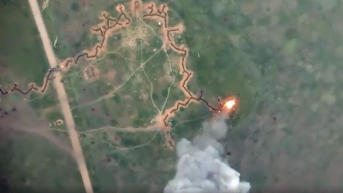 Также, на видео, снятом с беспилотника, показан момент уничтожения БМП прямым попаданием. После поражения машина взорвалась, а на позициях боевиков начался пожар.