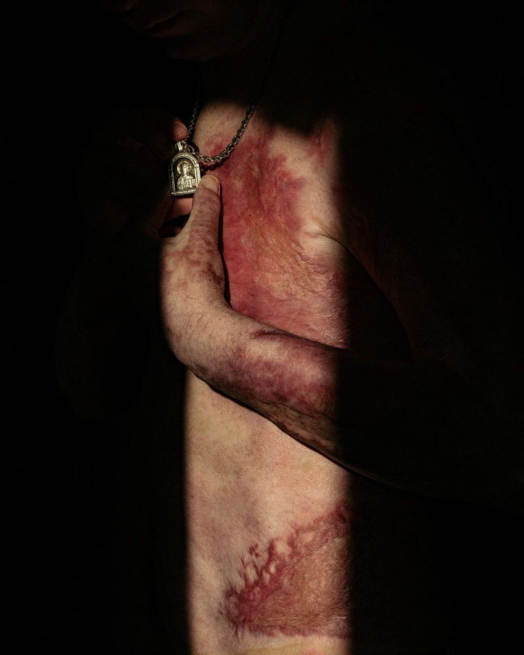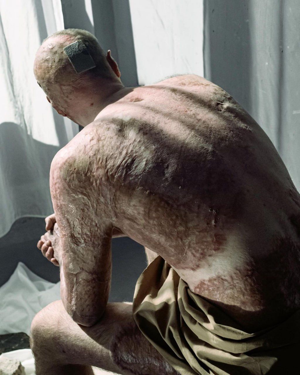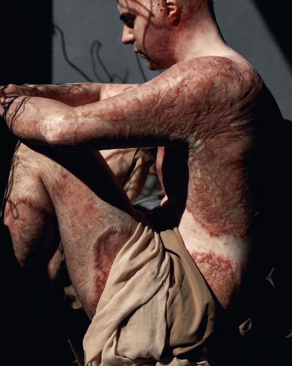 У парня испеченная кожа чуть ли не всего тела. Его в своем проекте "Неопалимые" пофотографировала Марта Сырко.