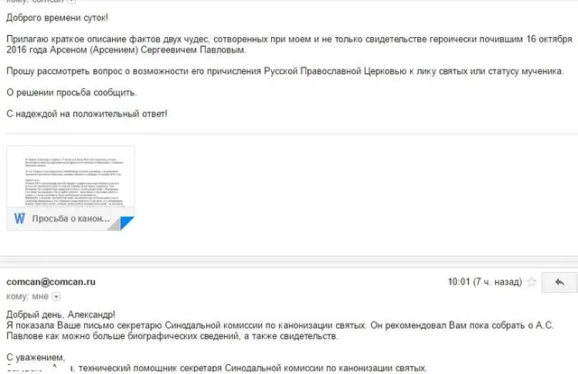 И вот через некоторое время Александр Чернов получил ответ от РПЦ. В письме представитель российской церкви просит собрать больше информации о "чудесах", которые сделал боевик "Моторола".
