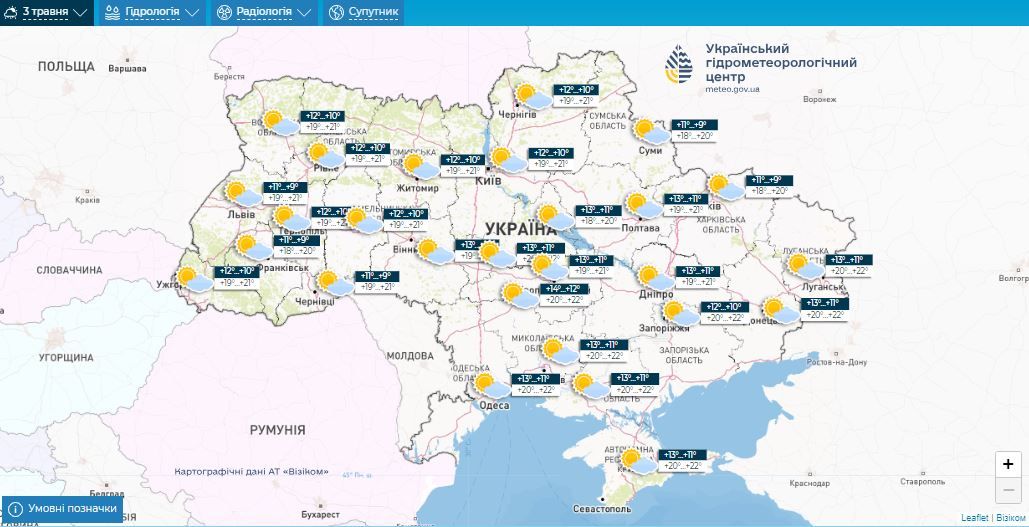 Как изменится погода 4 мая / Скриншоты 24 Канала с сайта Укргидрометцентра