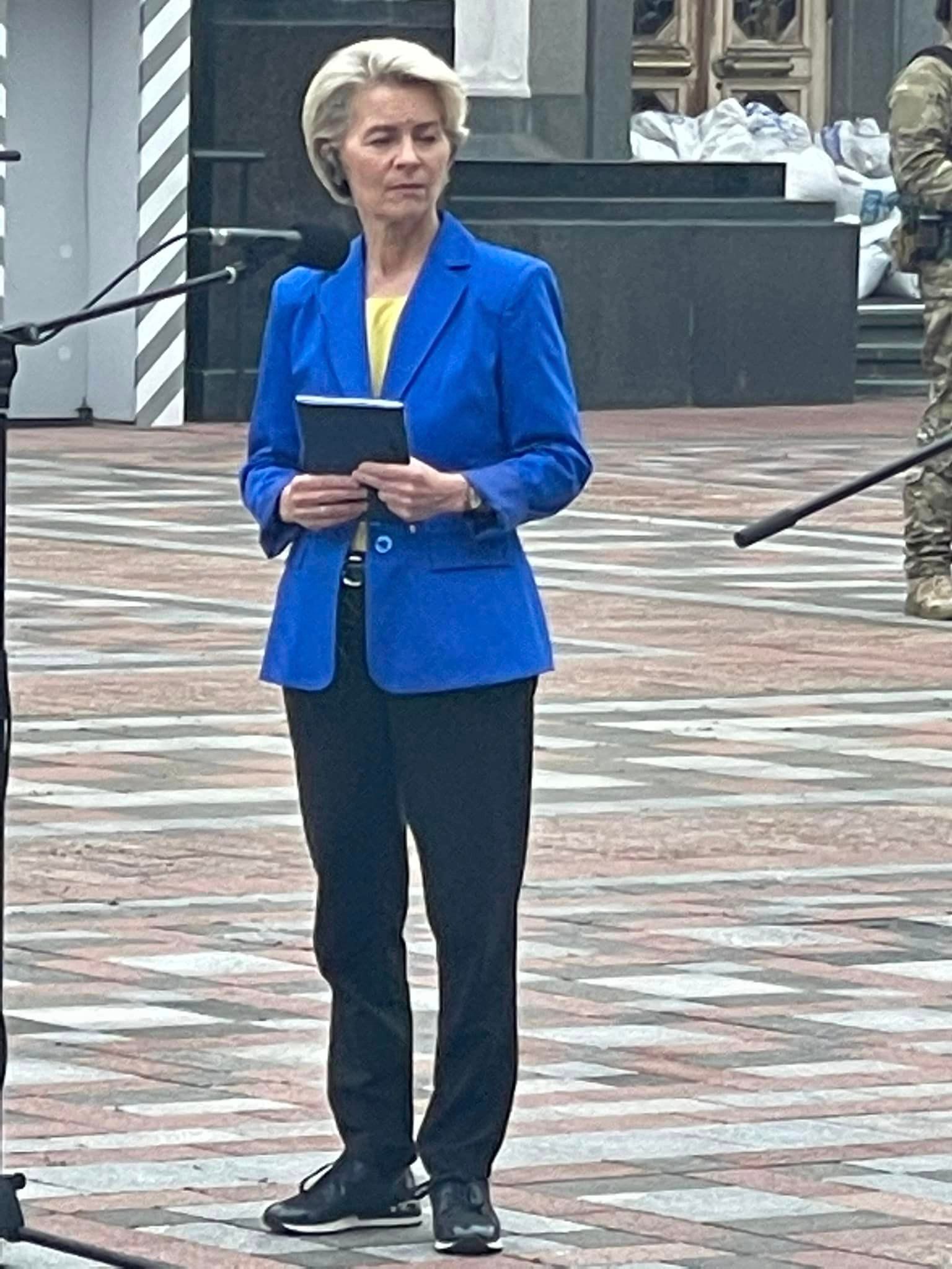 Он также обратил внимание на одежду Урсули фон дер Ляйен, которая была одета в желтую рубашку и синий пиджак, символизирующие цвета украинского флага.