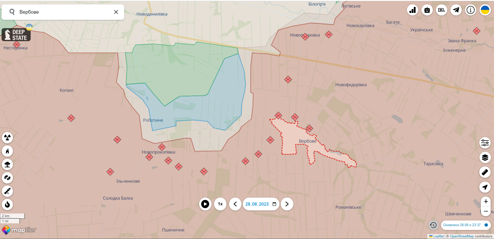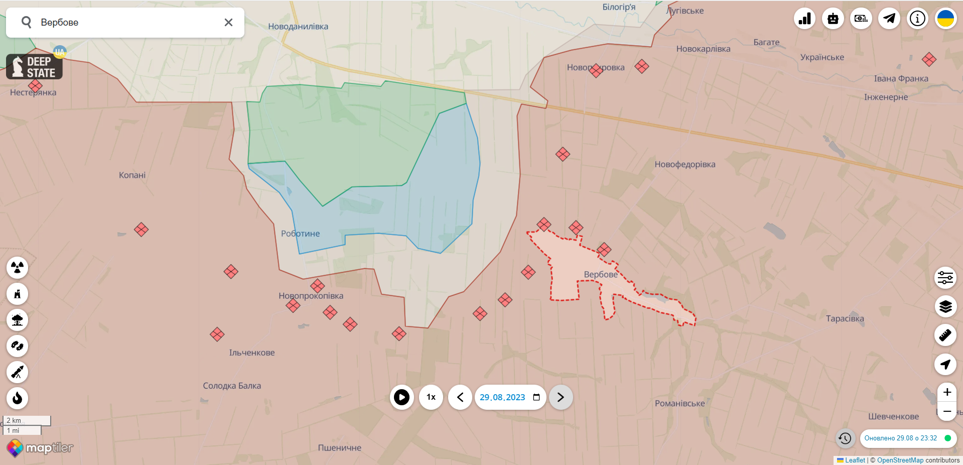 Успех ВСУ в районе Вербового: смотрите скриншоты изменений с карты DeepState