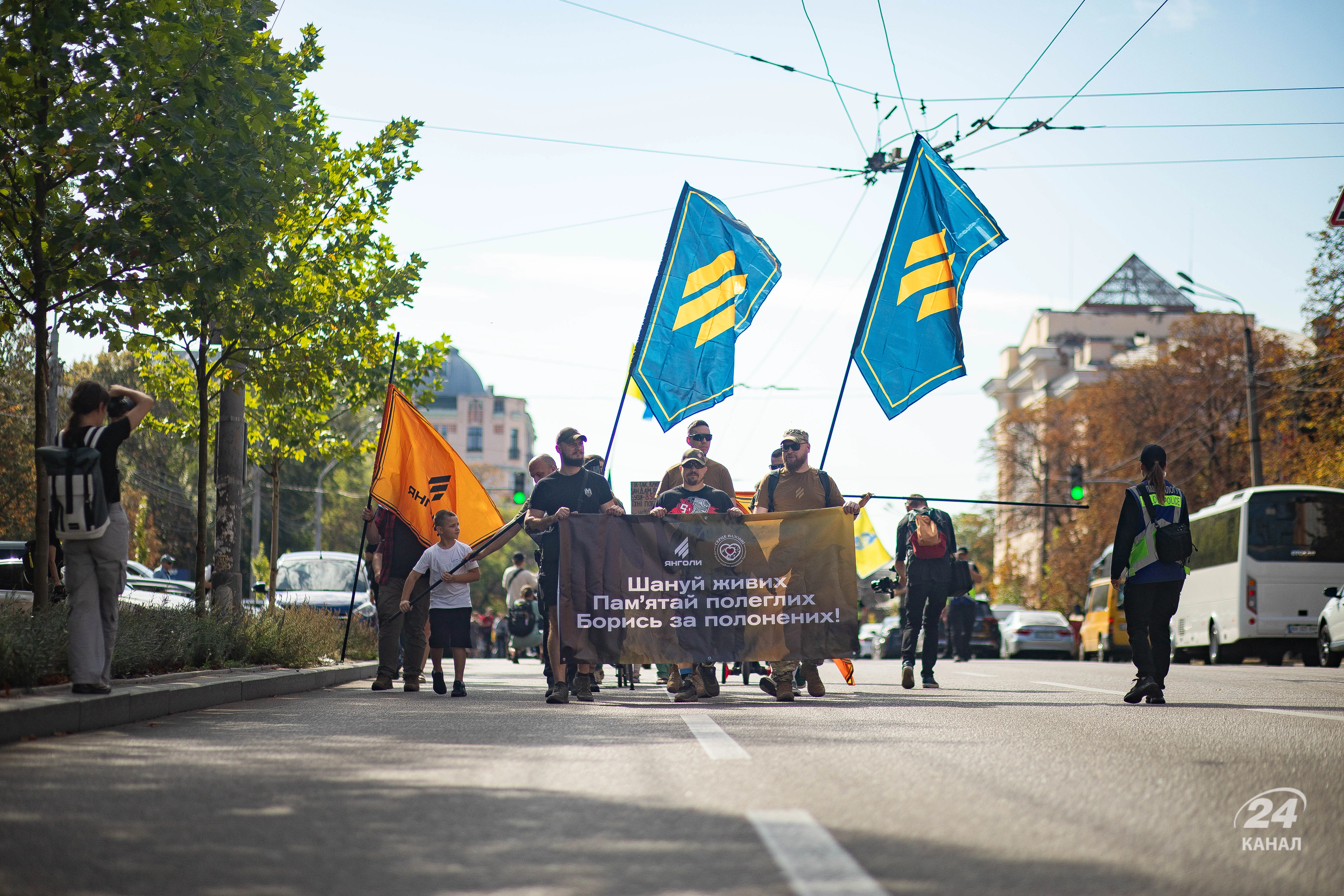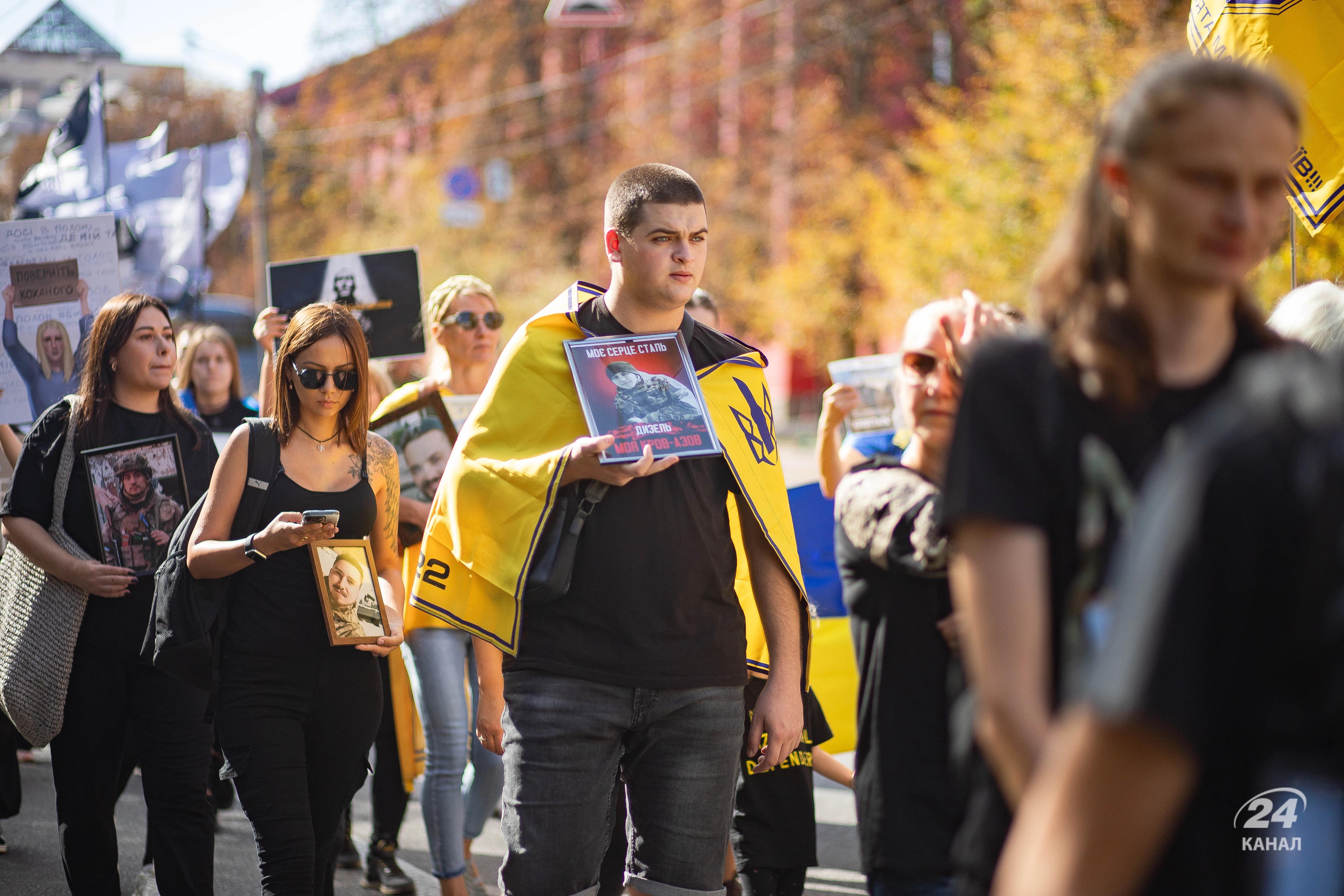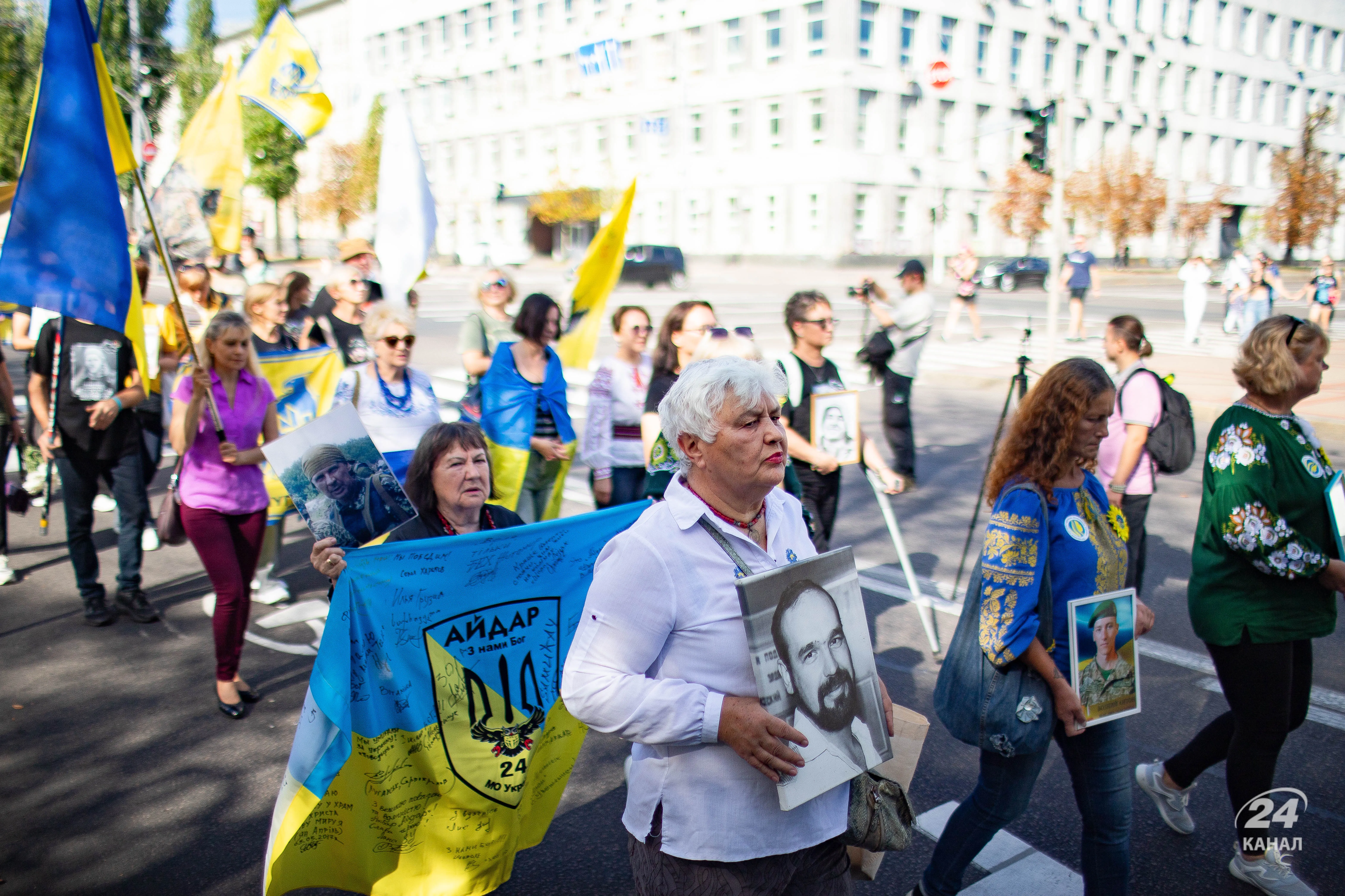 К акции присоединились родственники погибших и все желающие – украинцы несли в руках плакаты с фотографиями украинских воинов и с надписями "Уважай живых, Помни павших, Борись за пленных". Всего в торжественном шествии приняли участие около 1 тысячи граждан.