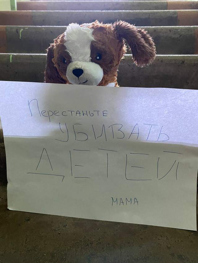 - "Мой маленький слоник, мой любимый котик, мой сын. Твоя мать не позволит лишить тебя жизни. Мы против войны! Пусть под бомбы идут сыновья Лукавого".