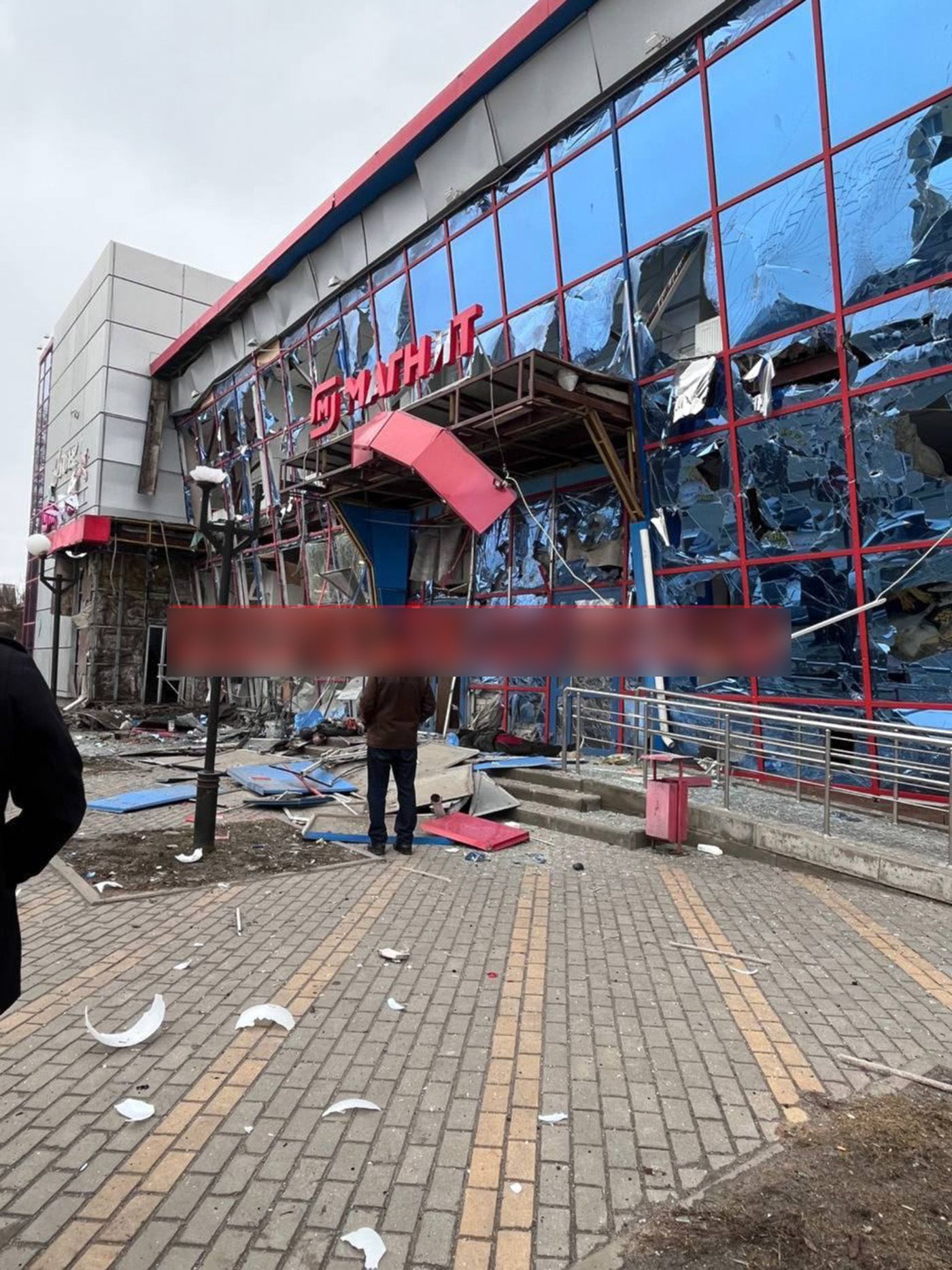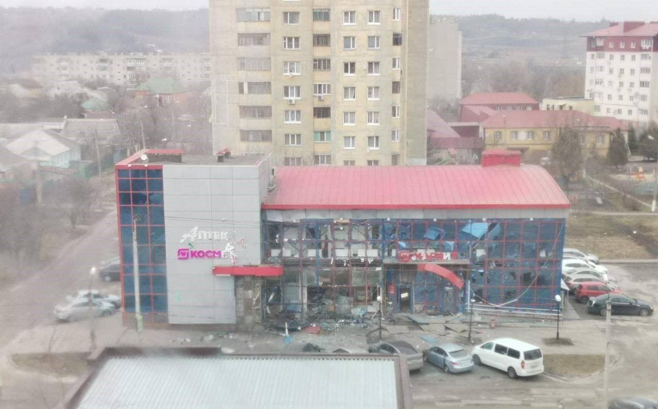 Российское ПВО бьет по Белгороду. Есть попадание в торговый центр. Разгонные блоки от ПВО лежат на улицах. Их хорошо видно на фото,
