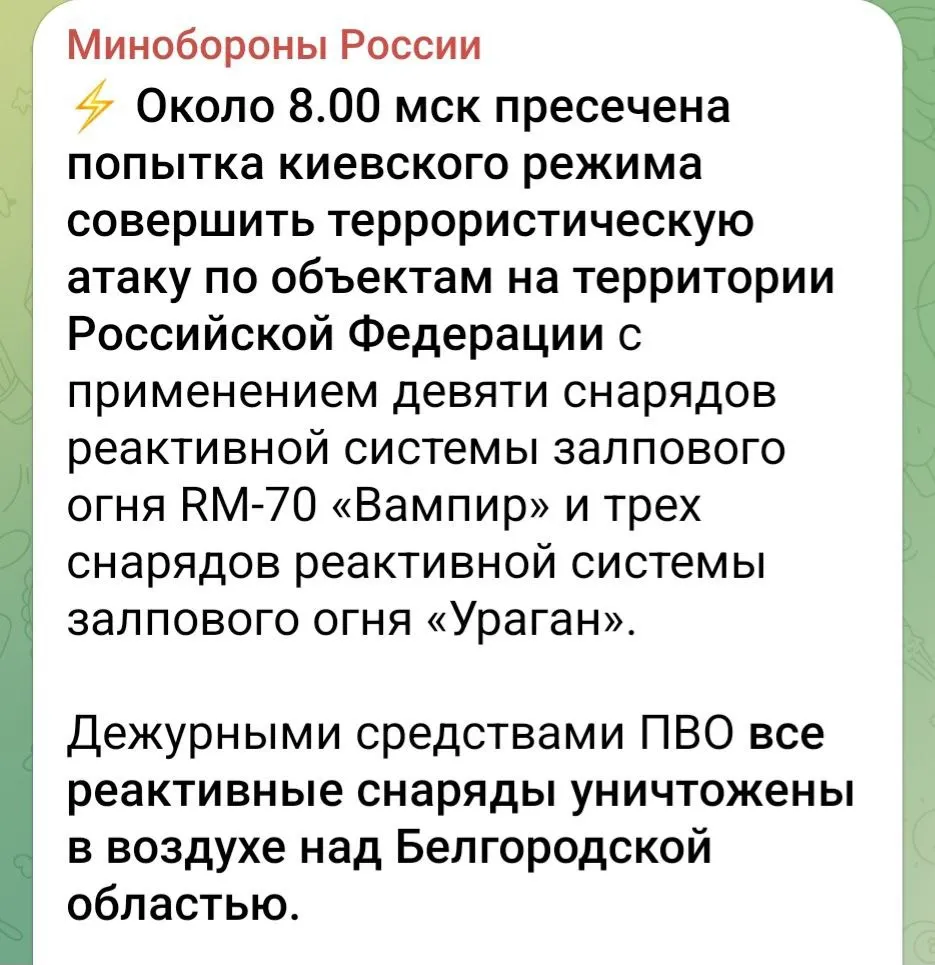 К теме Все по графику: массированный обстрел Белгорода стартовал, оккупанты якобы сбили 15 Vampire