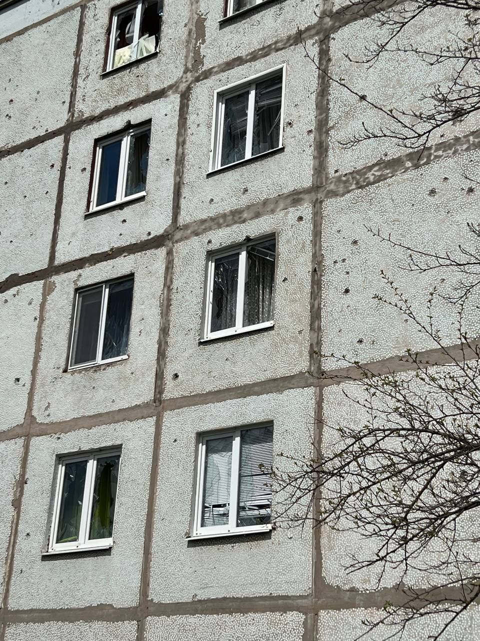Еще один снаряд, по словам Вячеслава Гладкова, разорвался рядом с другим многоквартирным домом. Из-за этого были сильно повреждены фасад, кровля и выбиты стекла. Более того, один автомобиль загорелся, а еще две машины получили существенные повреждения.