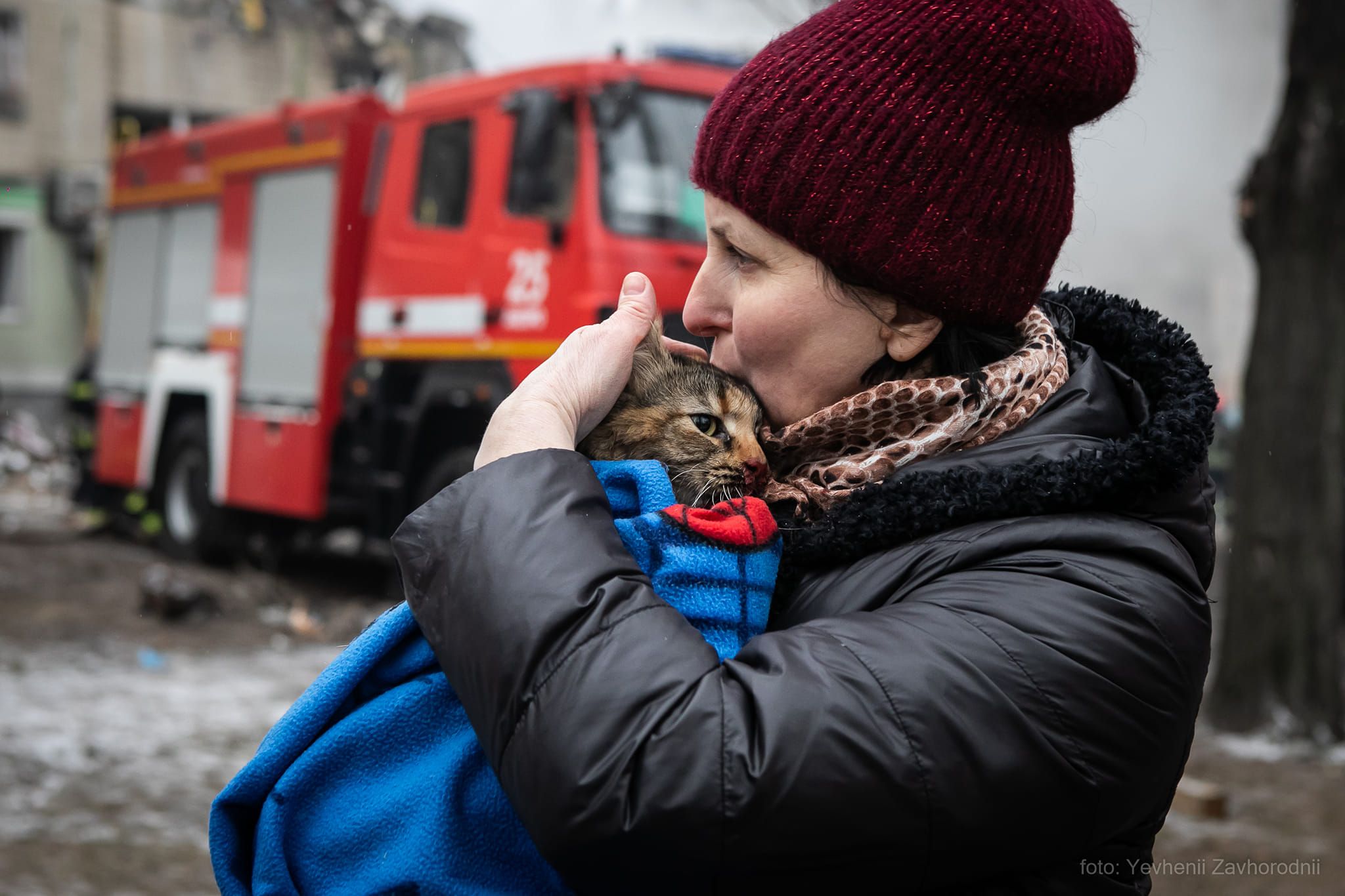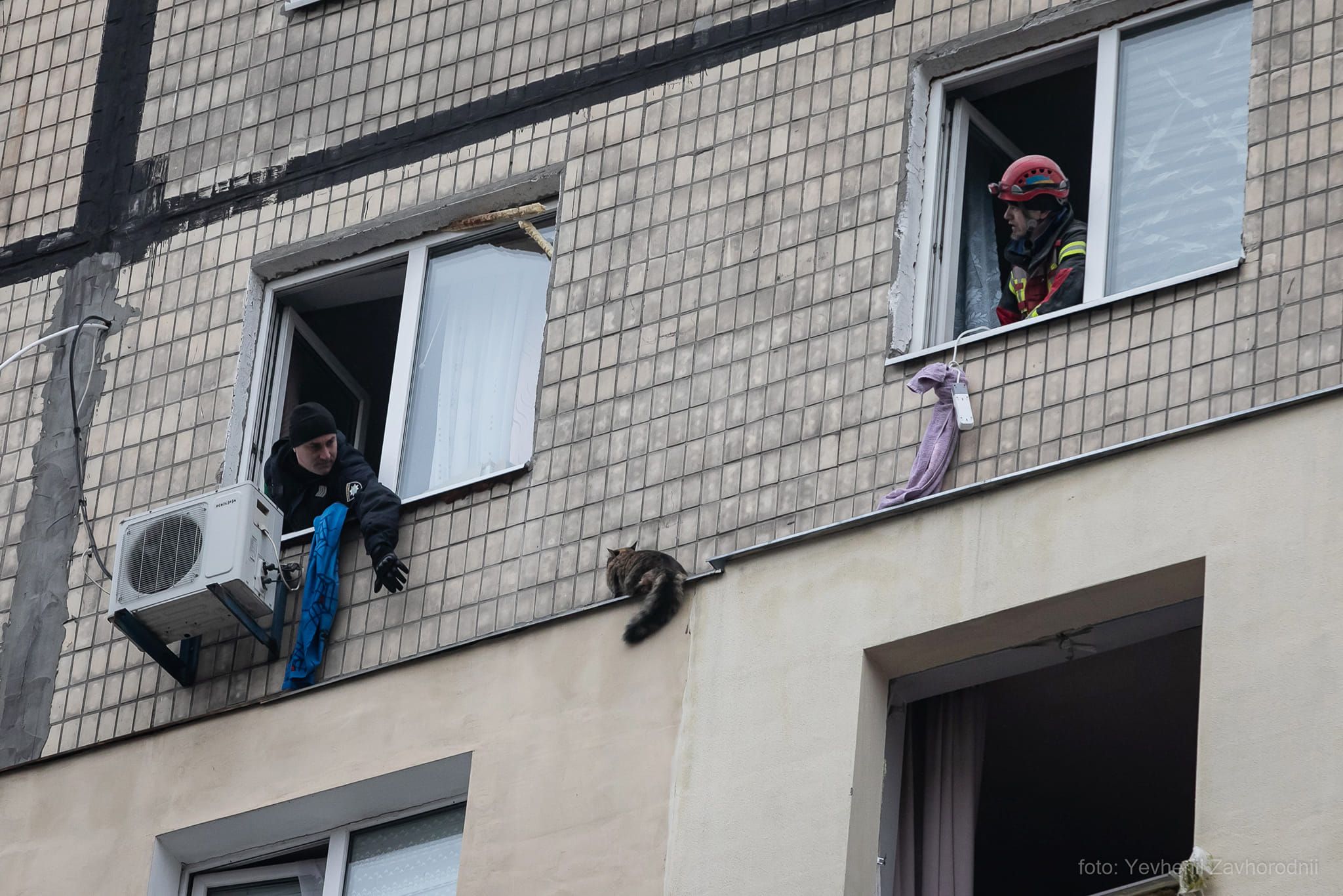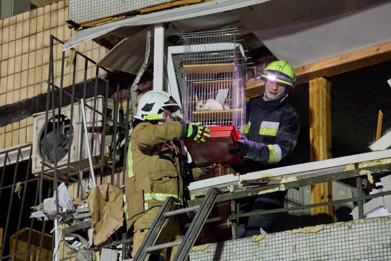 Спасатели вытащили из разрушенного дома в Днепре кота и шиншиллу / Фото "Днепр Оперативный" и Евгения Завгороднего