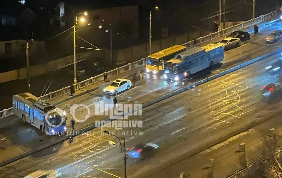 Троллейбус на Слобожанском проспекте заблокировал движение по виадуку в направлении центра Днепра: смотрите видео