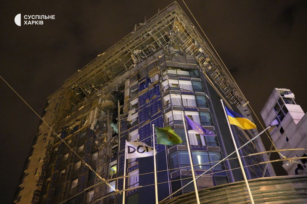 Во время атаки Россия попала и по гостинице. Об этом сообщил руководитель Харьковской облпрокуратуры Александр Фильчаков в 20:20.