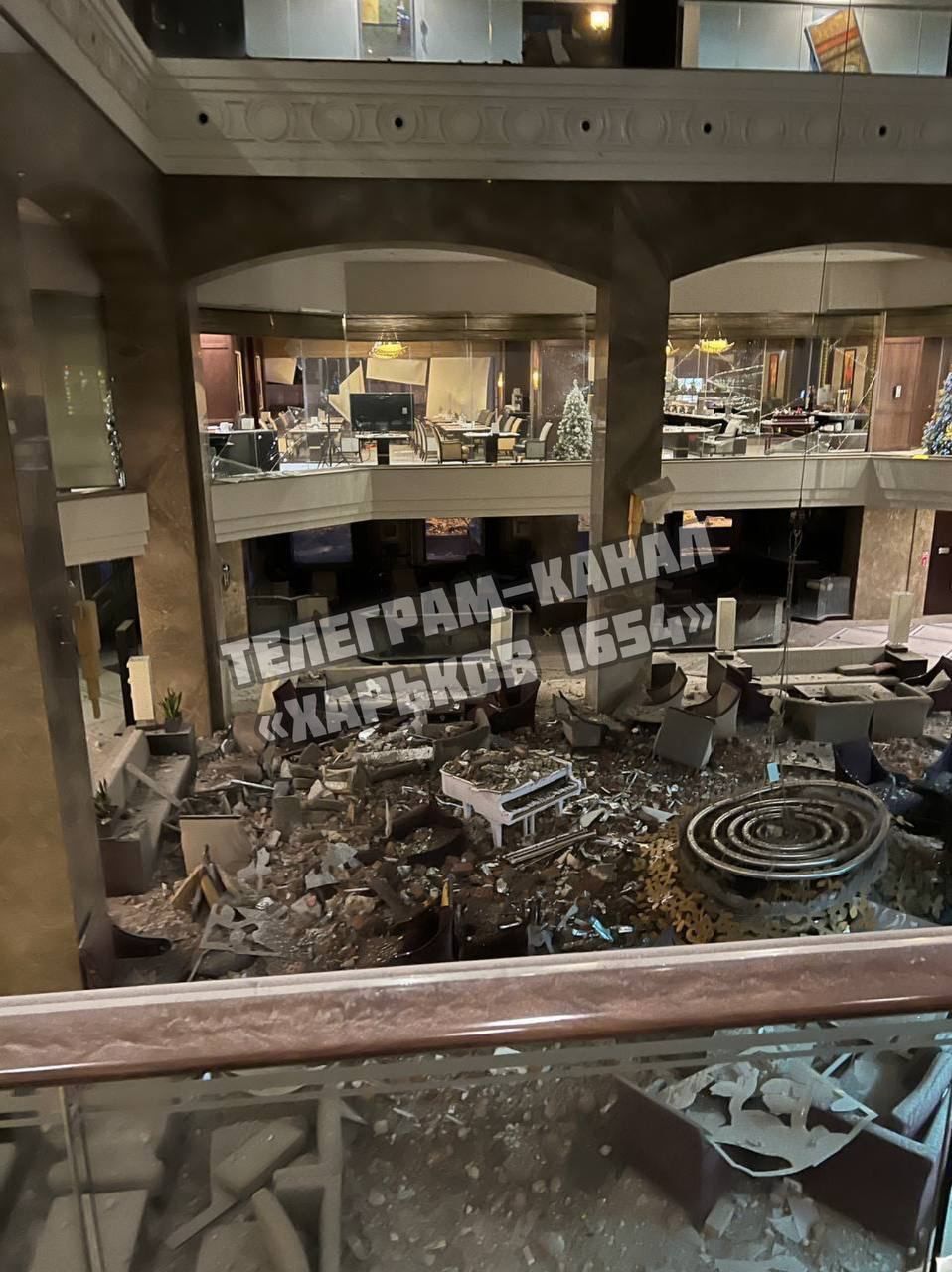 Разрушенный отель Kharkiv Palace после обстрела 30 декабря / Фото телеграм-канал "Харьков 1654"