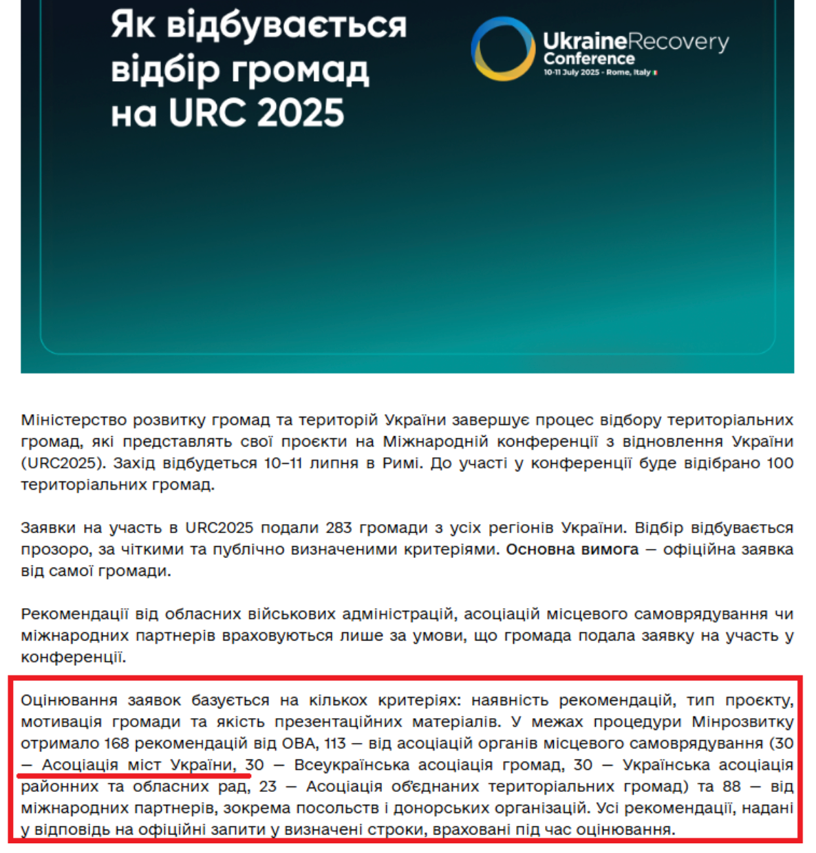 Конференция по вопросам восстановления Украины: почему отбор общин вызвал споры
