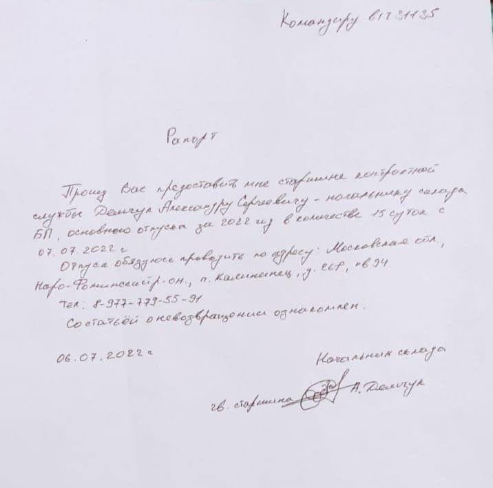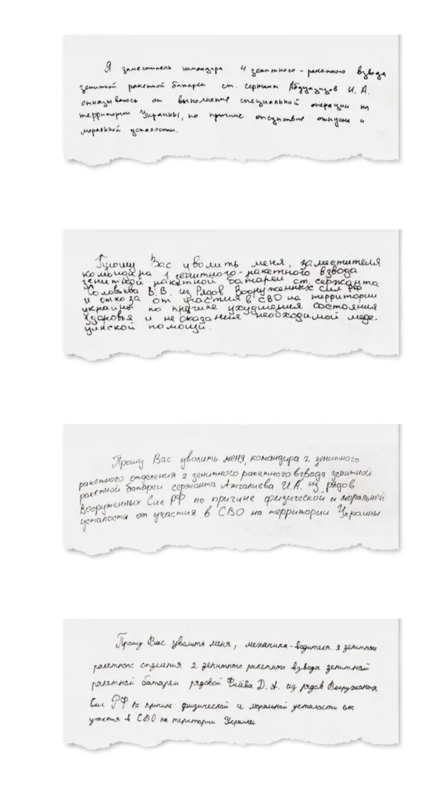 10 рапортов оккупантов нашли в двухэтажном доме в Изюме, в котором находились россияне. Командир зенитно-ракетного взвода из Московской области в рапорте просил уволить его из-за морального истощения и отсутствия отпусков. В других документах оккупанты писали о физическом и моральном истощении, ухудшении состояния здоровья и отсутствии необходимой медицинской помощи.
