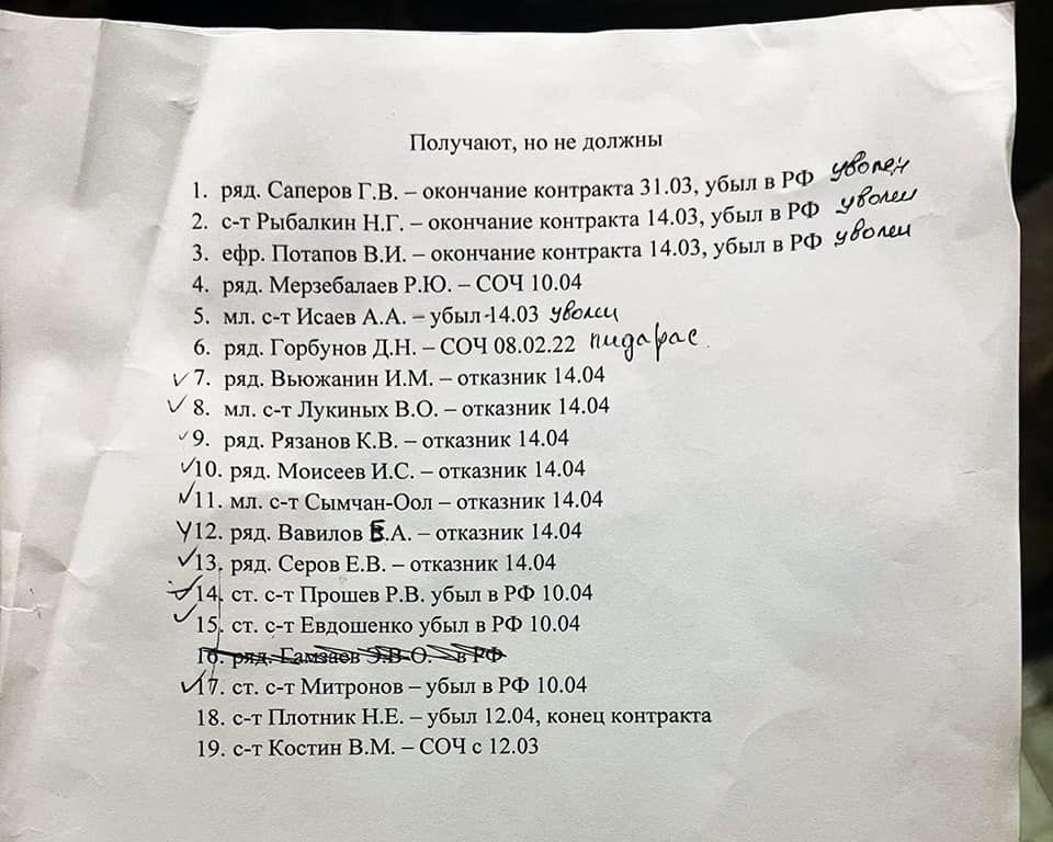 Также в рапортах оккупанты жаловались на то, что им отказывали в отпусках по семейным обстоятельствам.