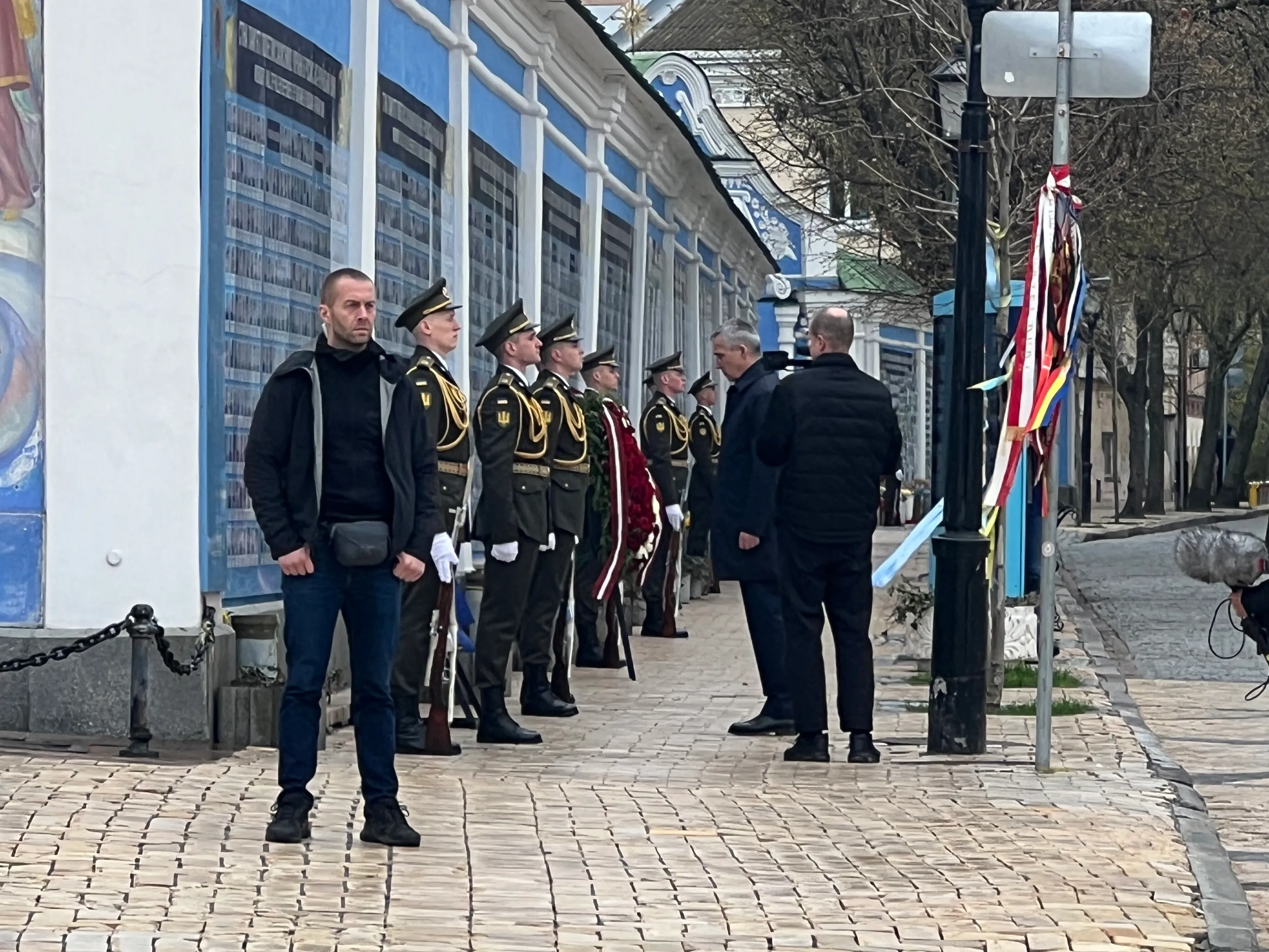 Йенса Столтенберга в Киеве 20 апреля увидел журналист Kyiv Independent. Генсек НАТО в тот момент чествовал память погибших украинских военных на Михайловской площади в центре Киева.
