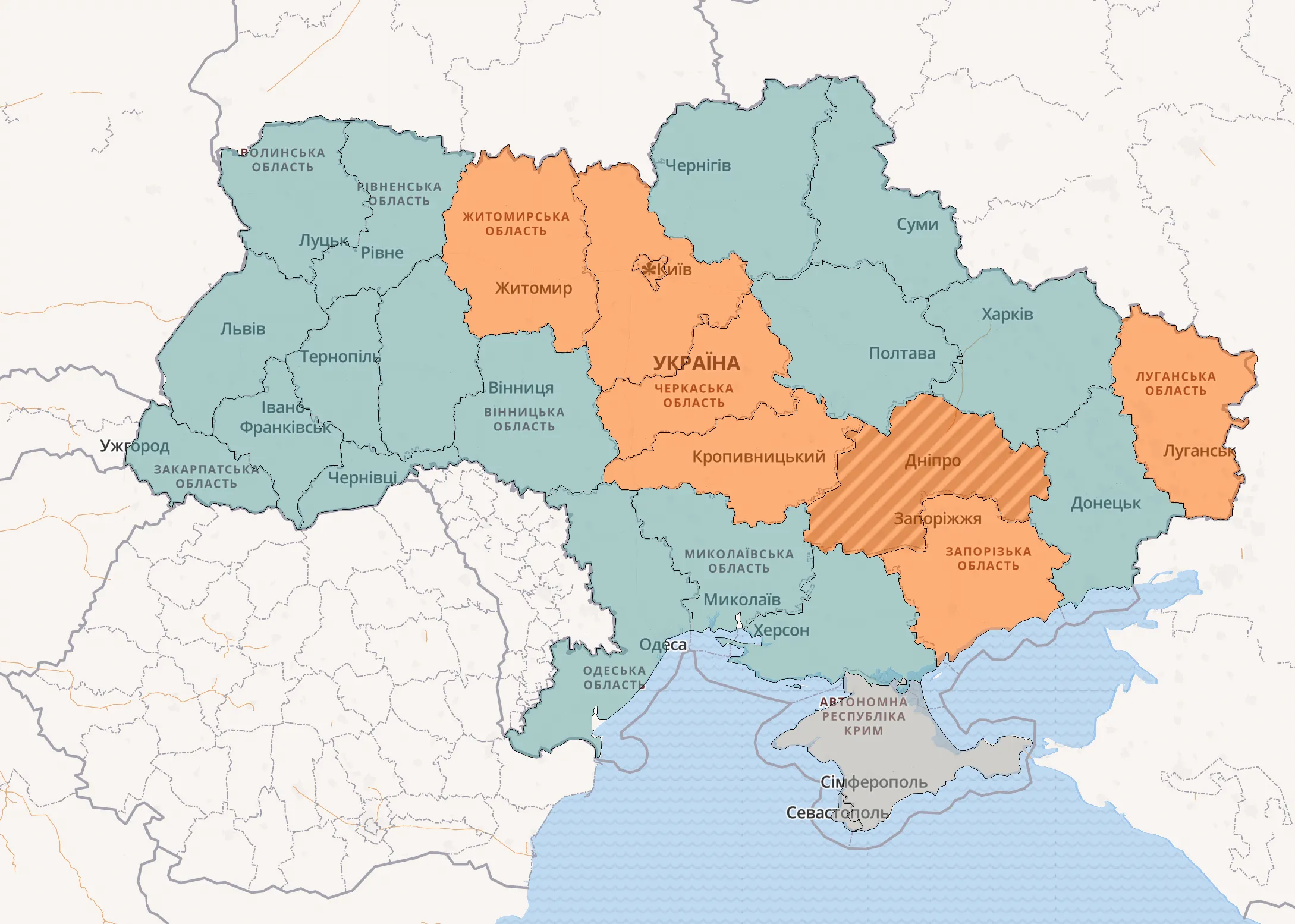 Утром 19 июня в нескольких областях Украины, а также в Киеве прозвучали сигналы о воздушной тревоге. Сирены заработали около 07:23 в Днепропетровской области, а уже через 20 минут – в столице. Отметим, что на 07:53 отбой уже дали в Запорожской области.