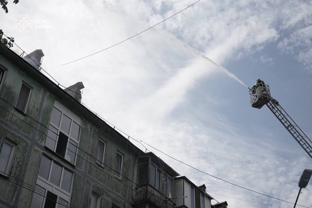 В Киевской городской государственной администрации также отметили, что уже продолжается тушение пожара на крыше жилого дома в Соломенском районе. По предварительной информации, горит крыша дома на улице Авиаконструктора Антонова.