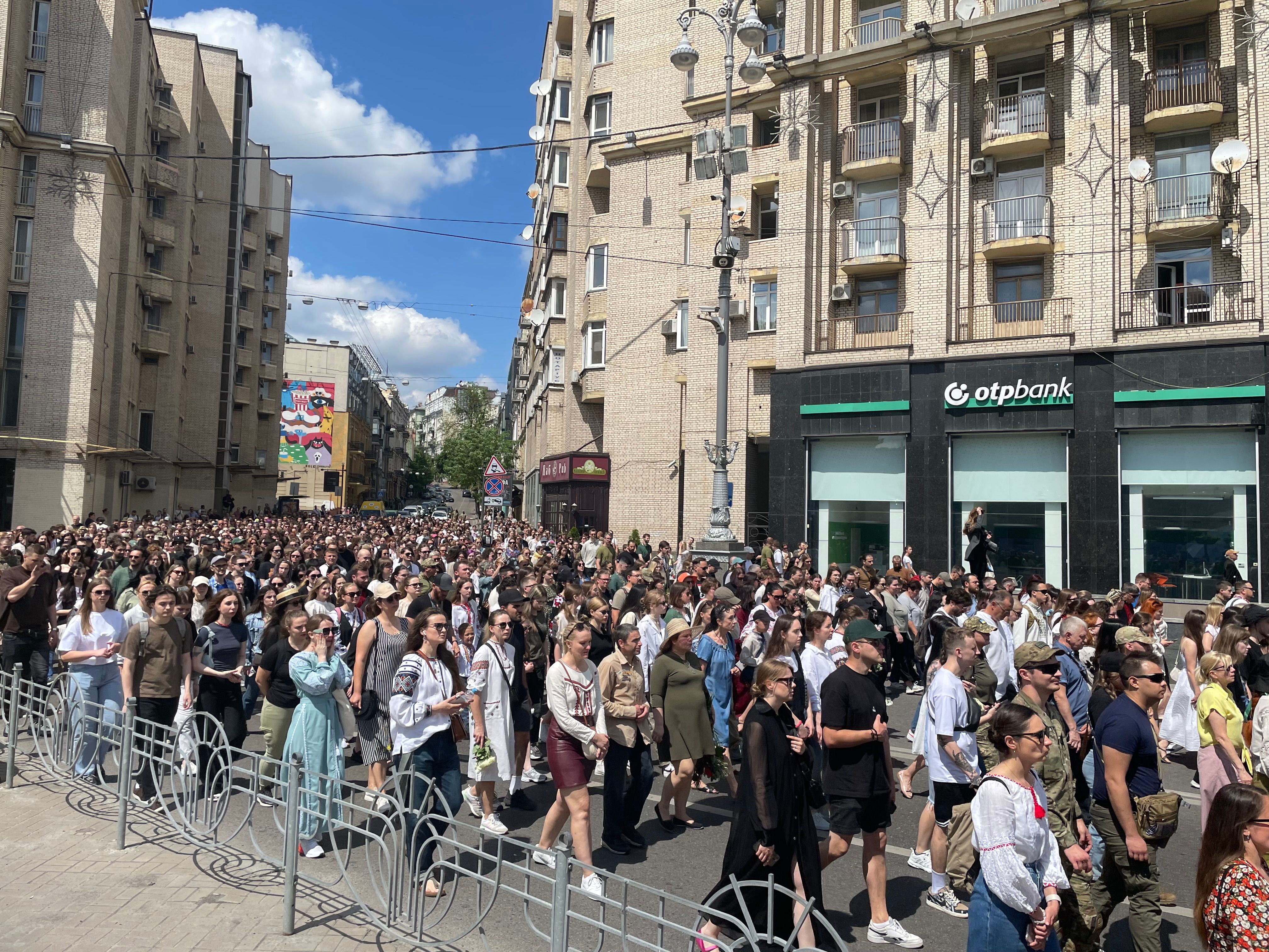 Сразу после панихиды в храме на Майдане запланировано прощание с защитницей. По приблизительным оценкам, сотни украинцев пришли, чтобы проводить парамедика в последний путь. Среди них как родные, собратья и коллеги Ирины, так и множество небезразличных граждан.