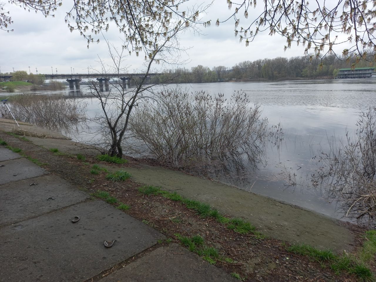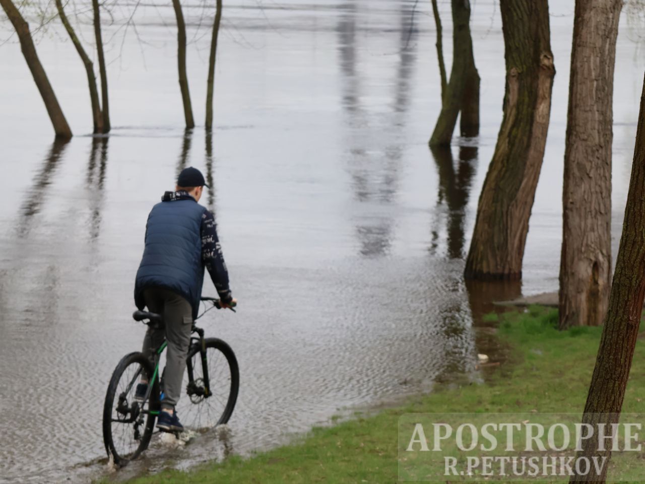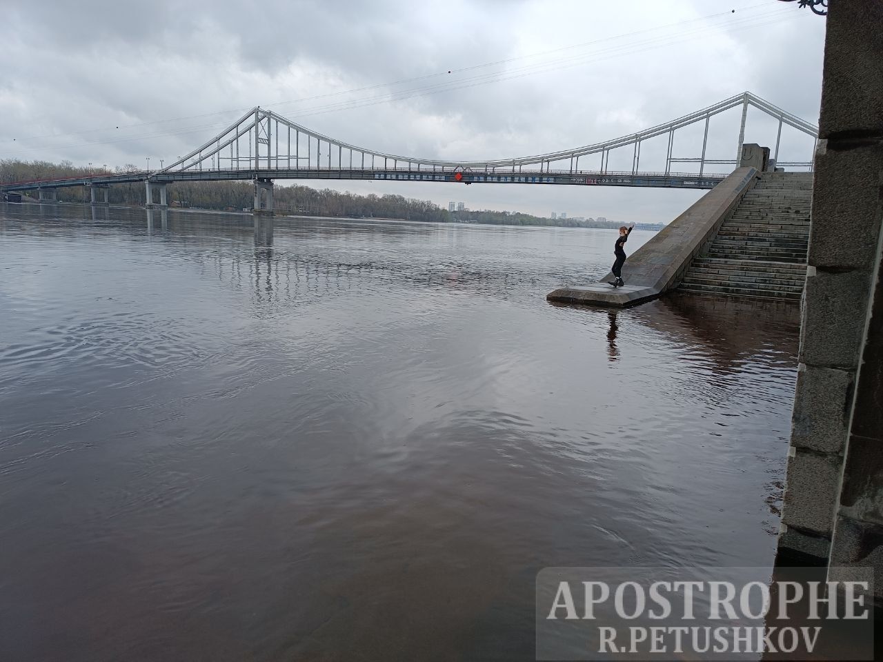 В результате подъема воды в Днепре в Киеве наблюдают значительное подтопление береговой линии. Где еще вчера ездили велосипеды и самокаты – сегодня рыбачат местные мужчины.